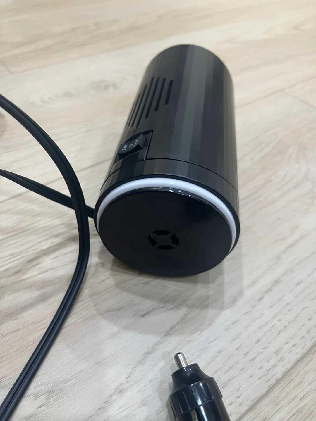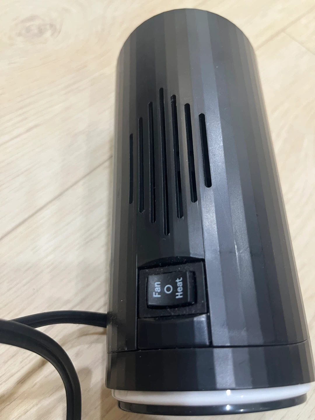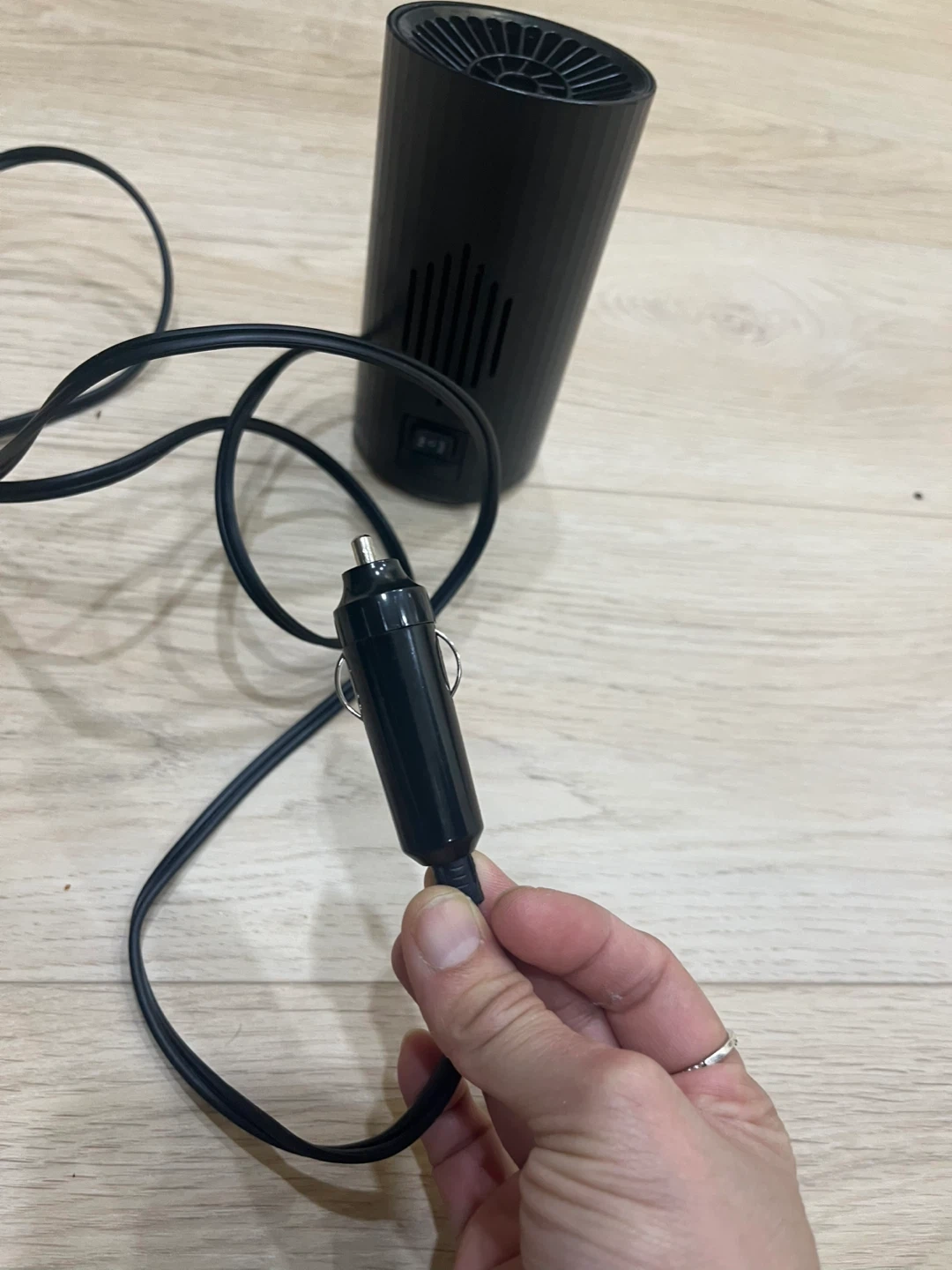 I'm selling a portable car heater fan in black. It features a fan and heat setting, perfect for keeping your car comfortable in any weather. It comes with the car charger.