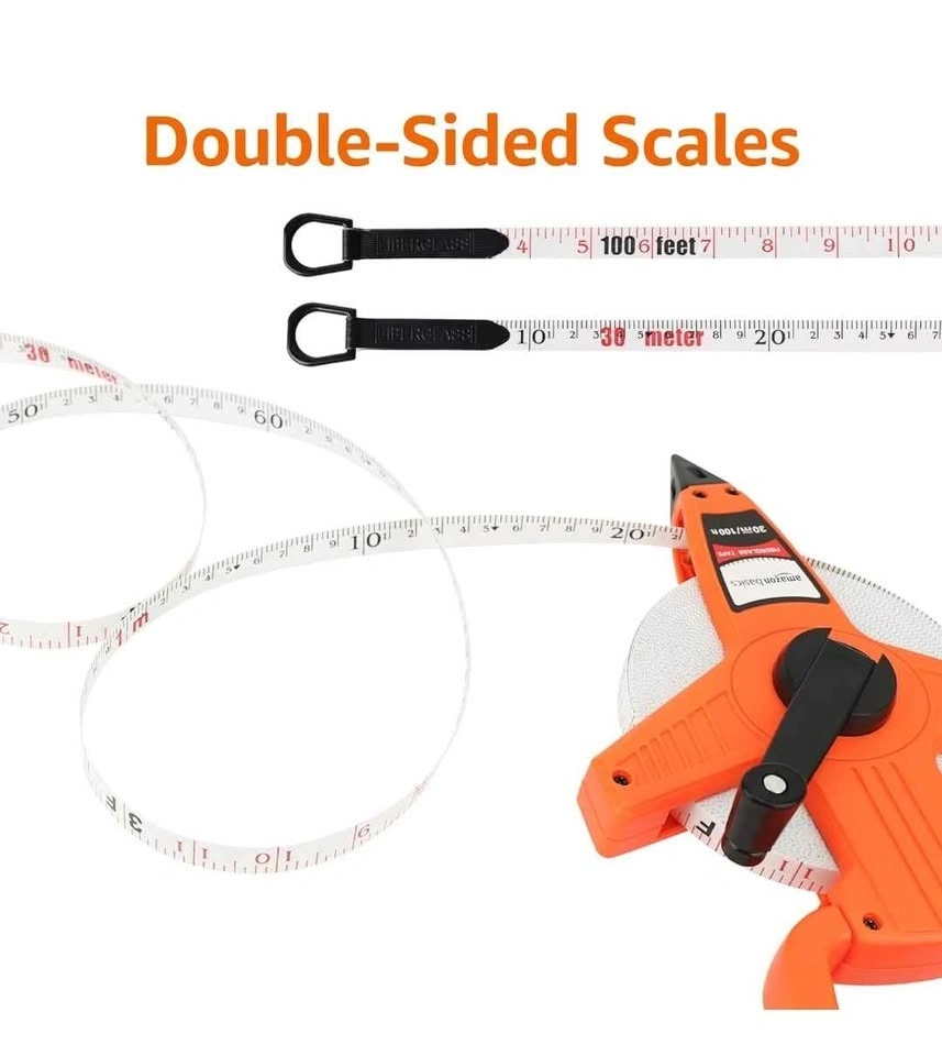 Amazon Basics Open Reel Fiberglass Tape Measure - 100-feet (30-Meters) by 1/2-Inch, Inch/Metric Scale, Impact Resistant Shell