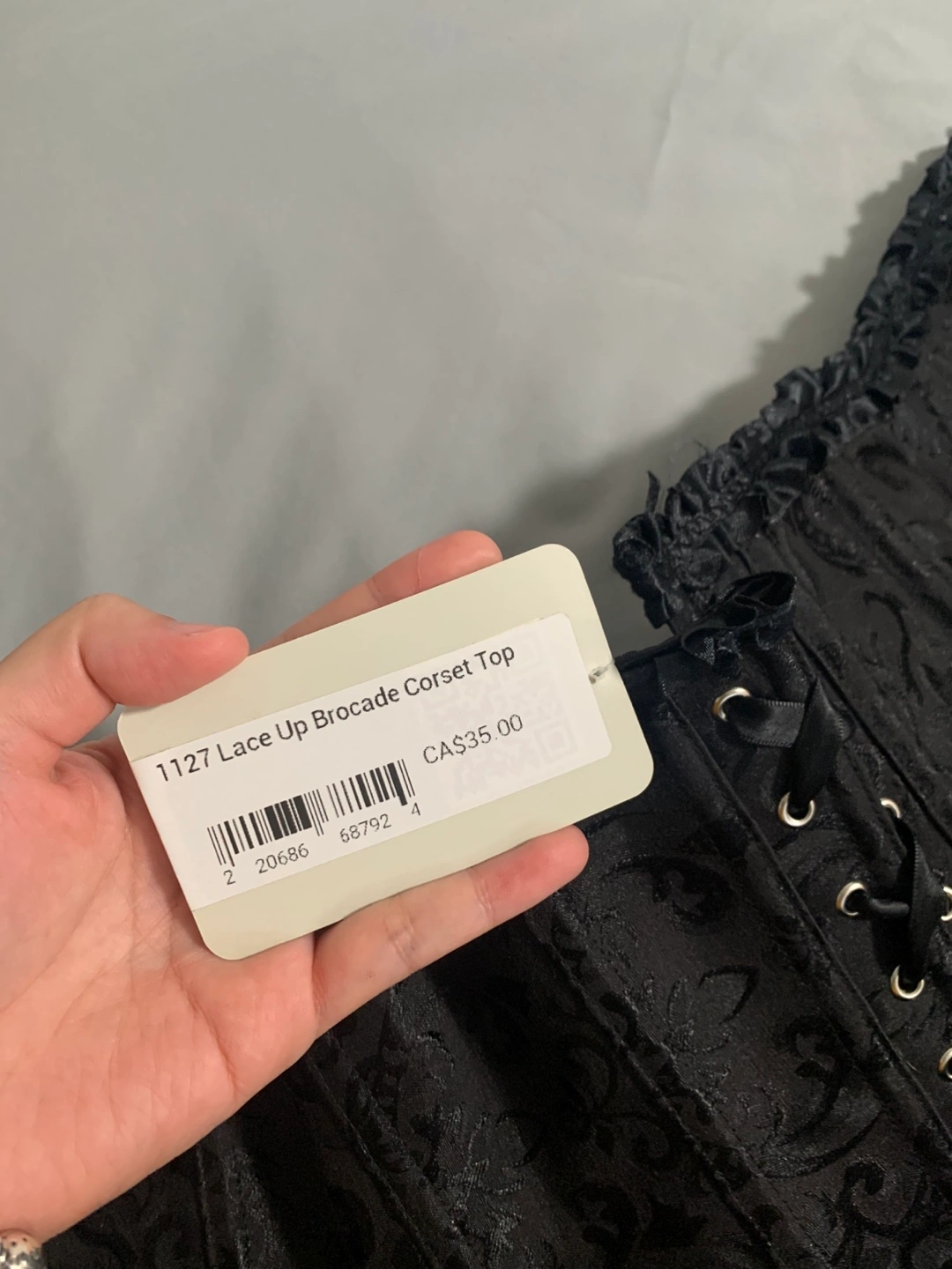 Buy & SellBlack Brocade Lace-Up Corset TopBlack Brocade Lace-Up Corset Top$20Elegant black corset top. Features a brocade pattern and lace-up front. Includes ribbons for tying. Unworn.ConditionNewSizeAdjustableWHERE TO MEETFamous Food kingswayView MapSELLERverifiedJediKensington Cedar Cottage17716 reviews2 chats·1 favorites·36 viewsSEND CHAT TO SELLERHi Jedi! I’m interested in your listing.Hi Jedi! I’m interested in your listing.Get the Karrot app to chatSign In to chat