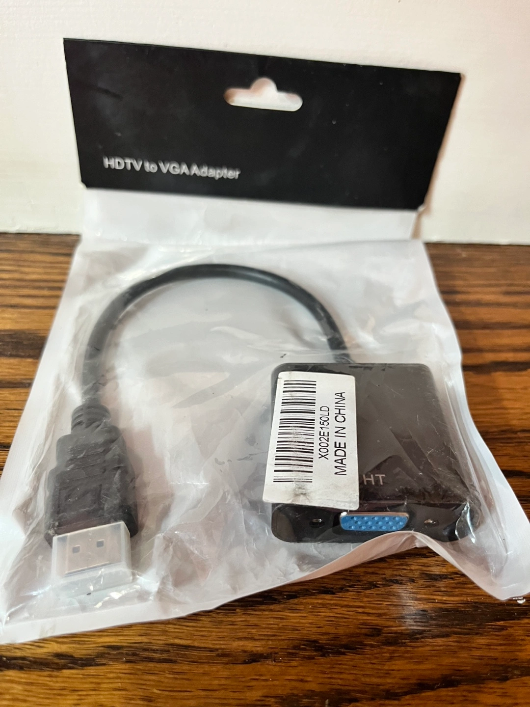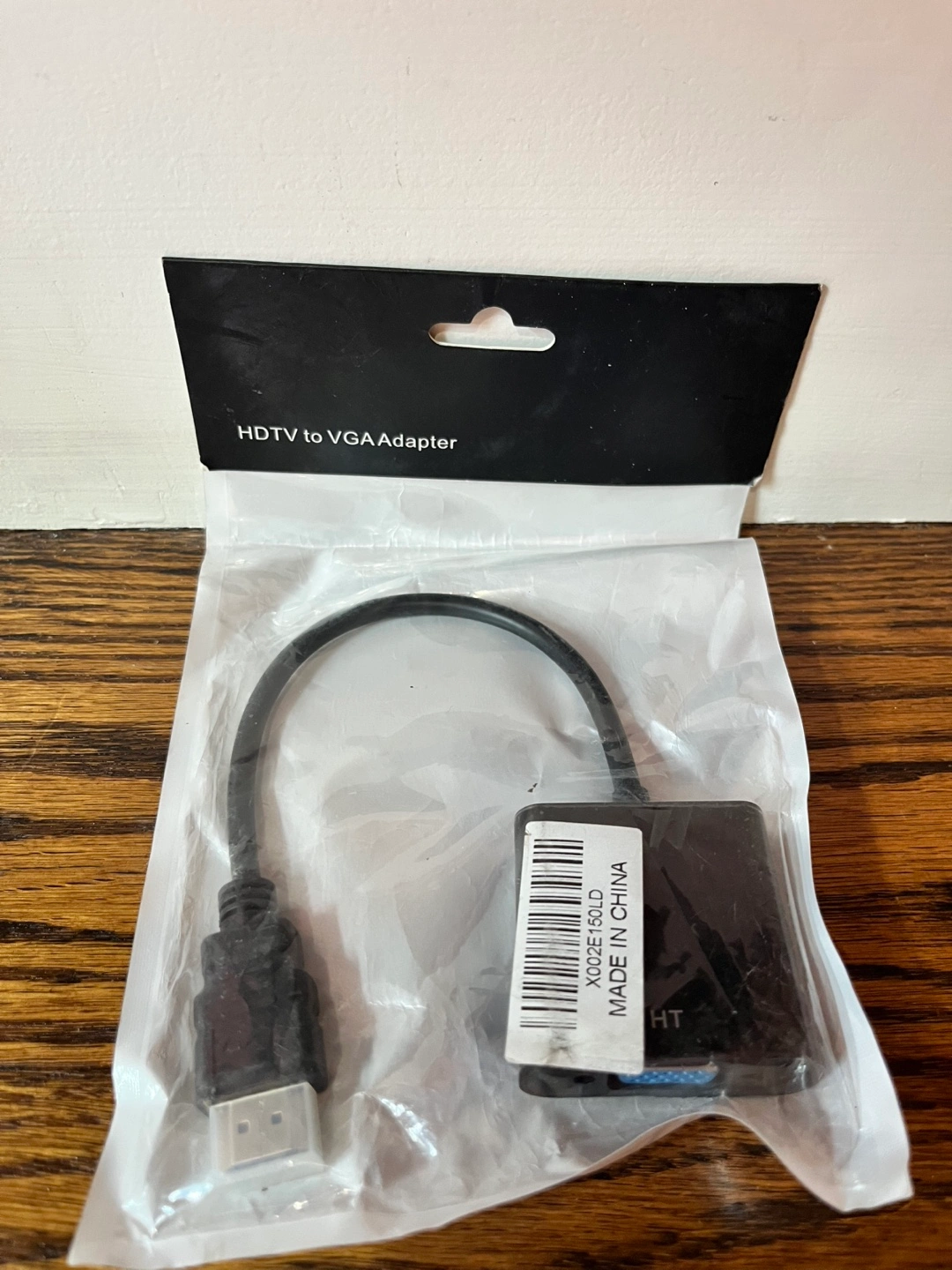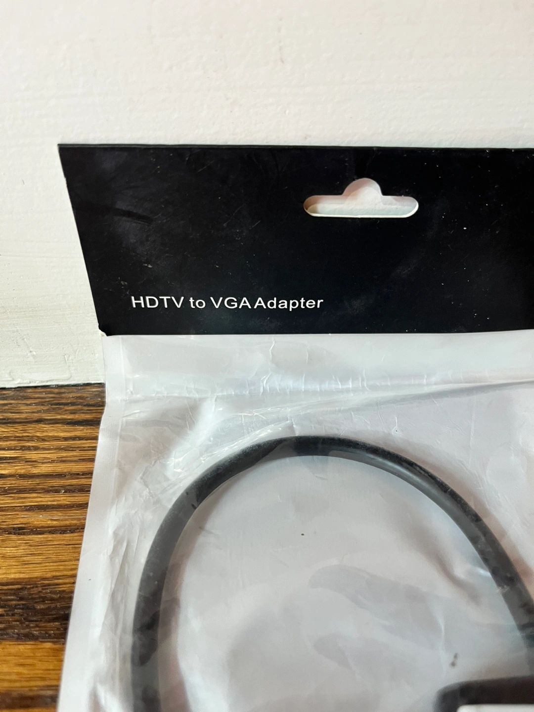 New HDTV to VGA adapter. Connects HDTV to VGA monitor or projector. Black cable. Compact design.