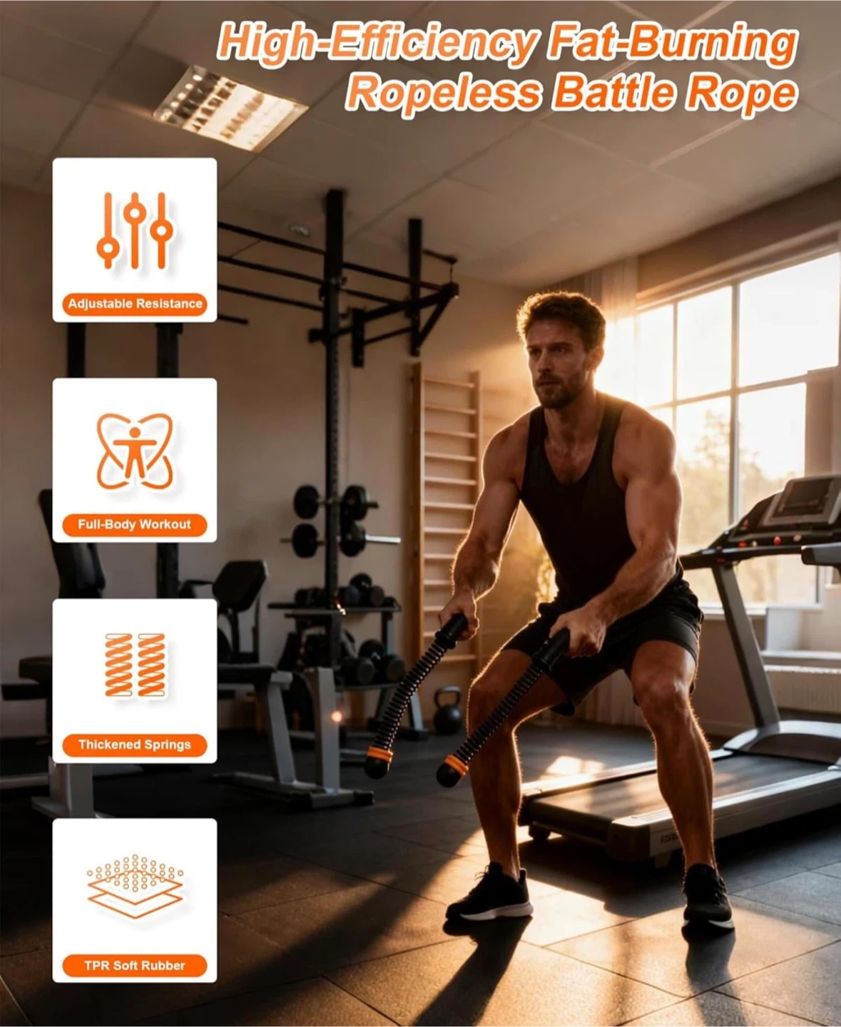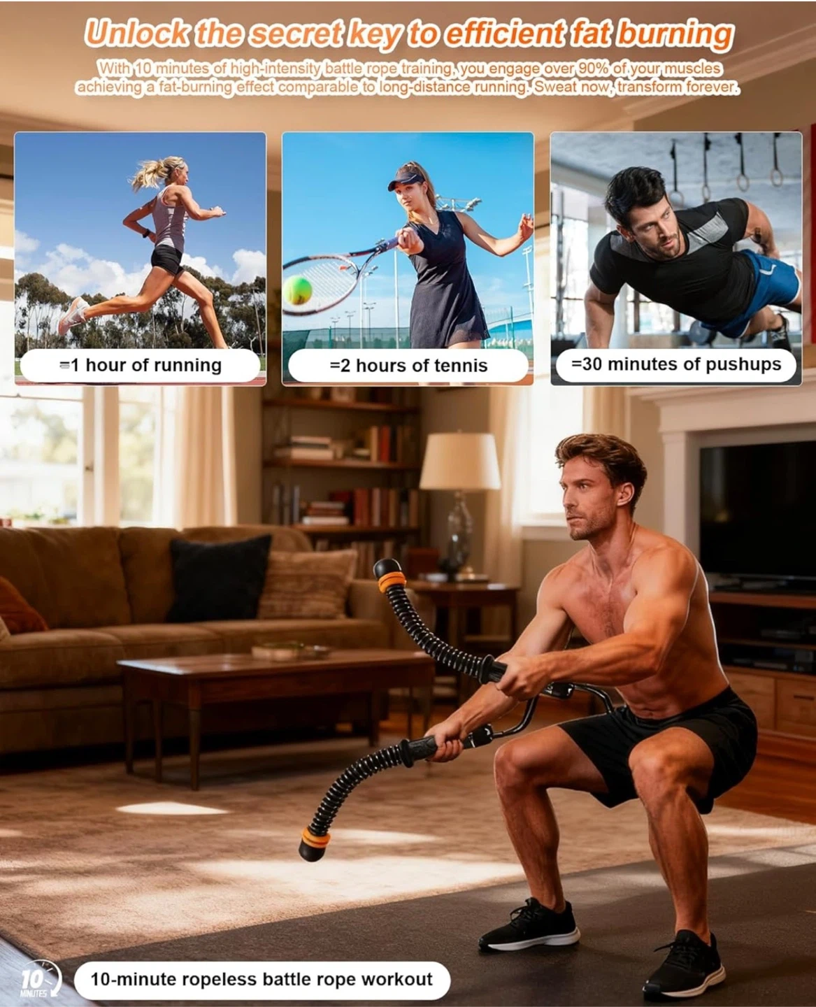 Ropeless Battle Ropes- Adjustable Portable Low-Impact Workout Equipment for Home Gym, Fitness Equipment for HIIT, Cardio & Muscle Training, Fat Burning for Men, Women & Fitness Enthusiasts (Pink)