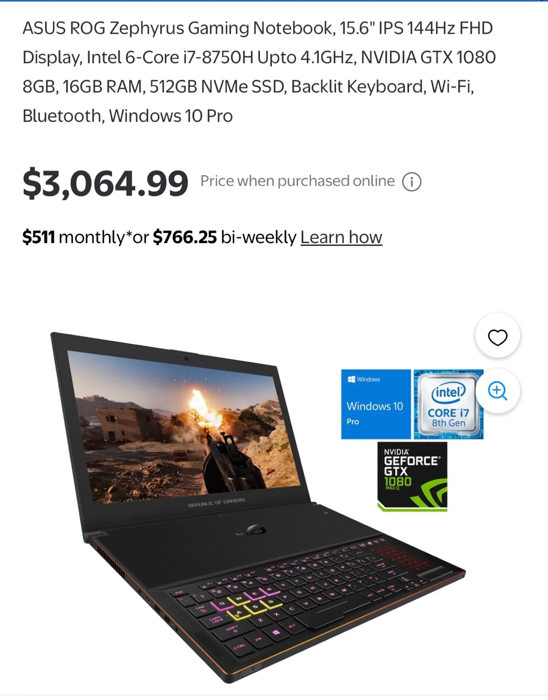 • Model: ASUS ROG Zephyrus S GX531GV-BS71-CB