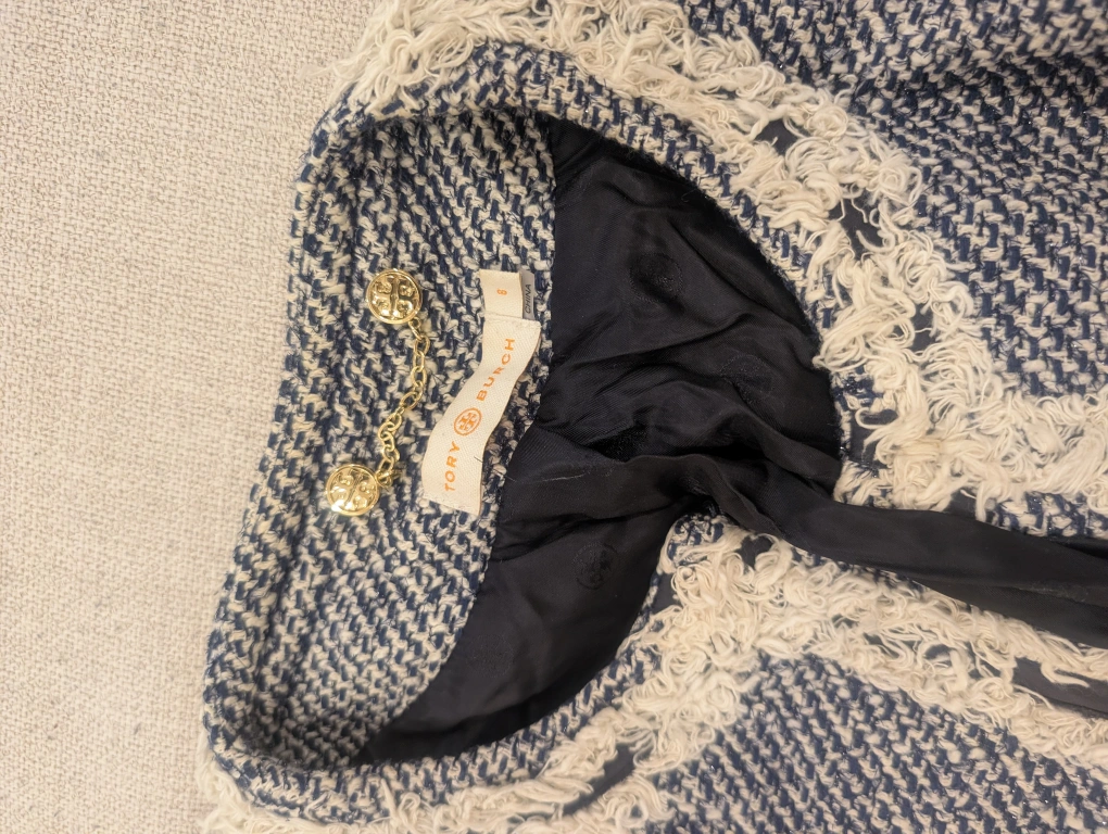 Tory Burch Blue and Cream Tweed Jacket Size 8