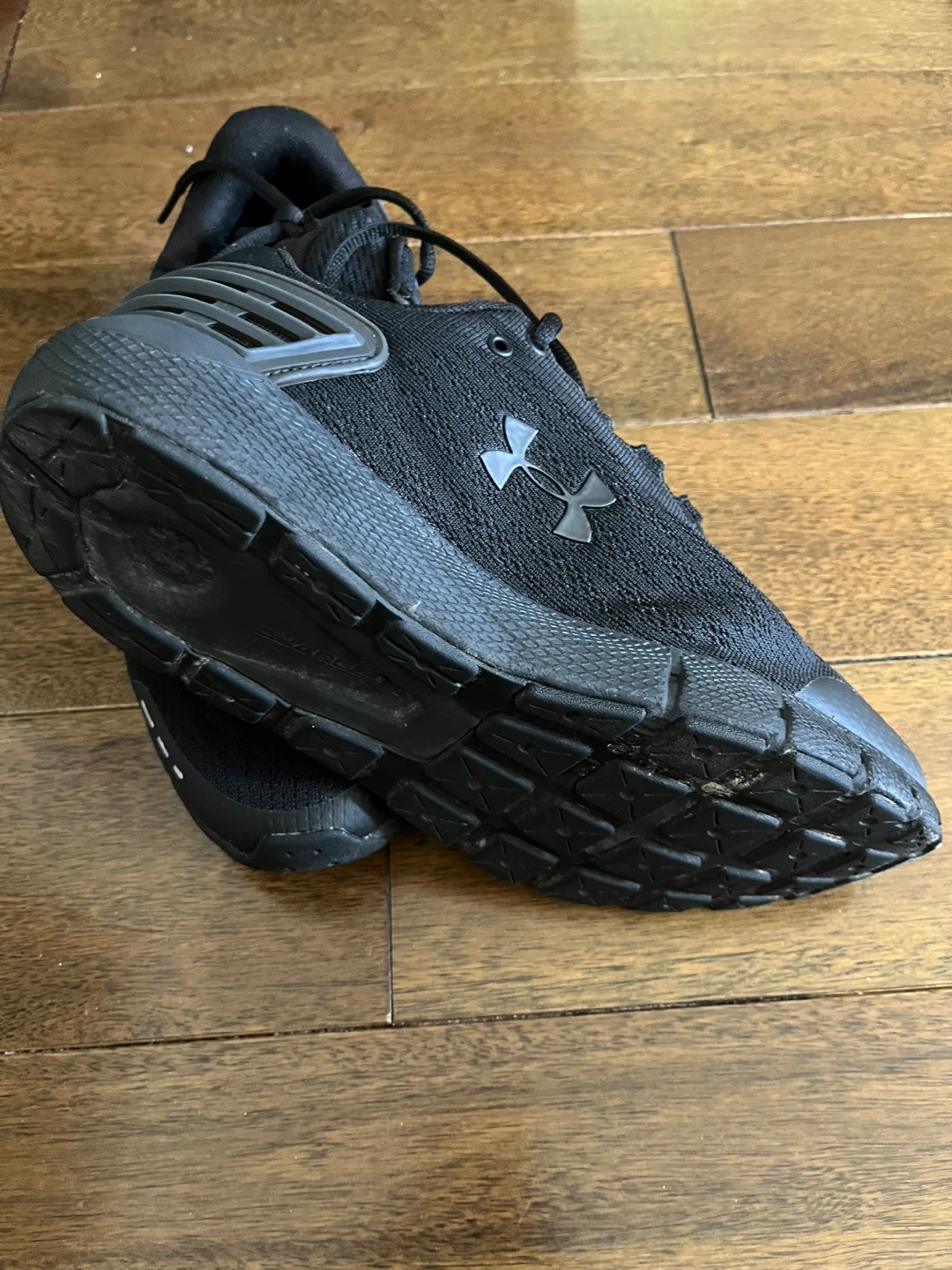 Selling a pair of Under Armour Charged Assert 9.5 running shoes in black. They're in good condition and ready for your next run!
