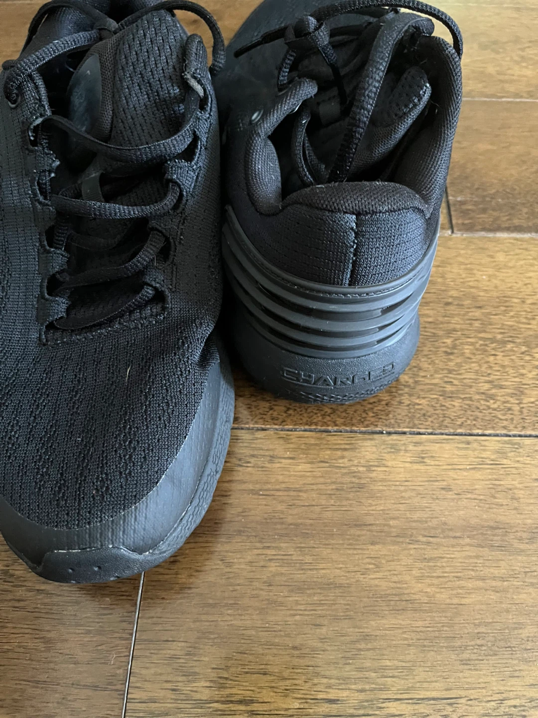 Selling a pair of Under Armour Charged Assert 9.5 running shoes in black. They're in good condition and ready for your next run!