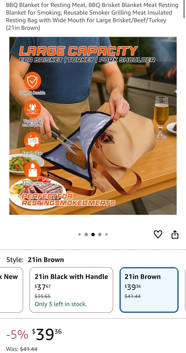 1 for $25, 2 for $45. Keep your smoked meats warm with this BBQ insulated bag! It's perfect for resting brisket, turkey, or pork shoulder after smoking. This reusable smoker grilling meat insulated resting bag has a wide mouth and is in new condition. Large capacity, tough and durable, waterproof and moistureproof, easy to clean. If the ad is up, it's available! Don't miss out on this great deal to keep your smoked meats at the perfect temperature.