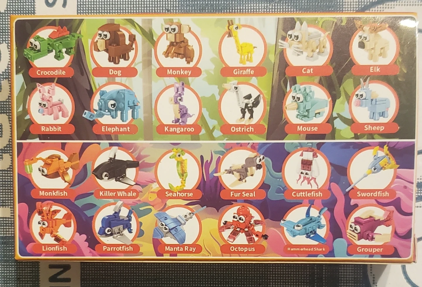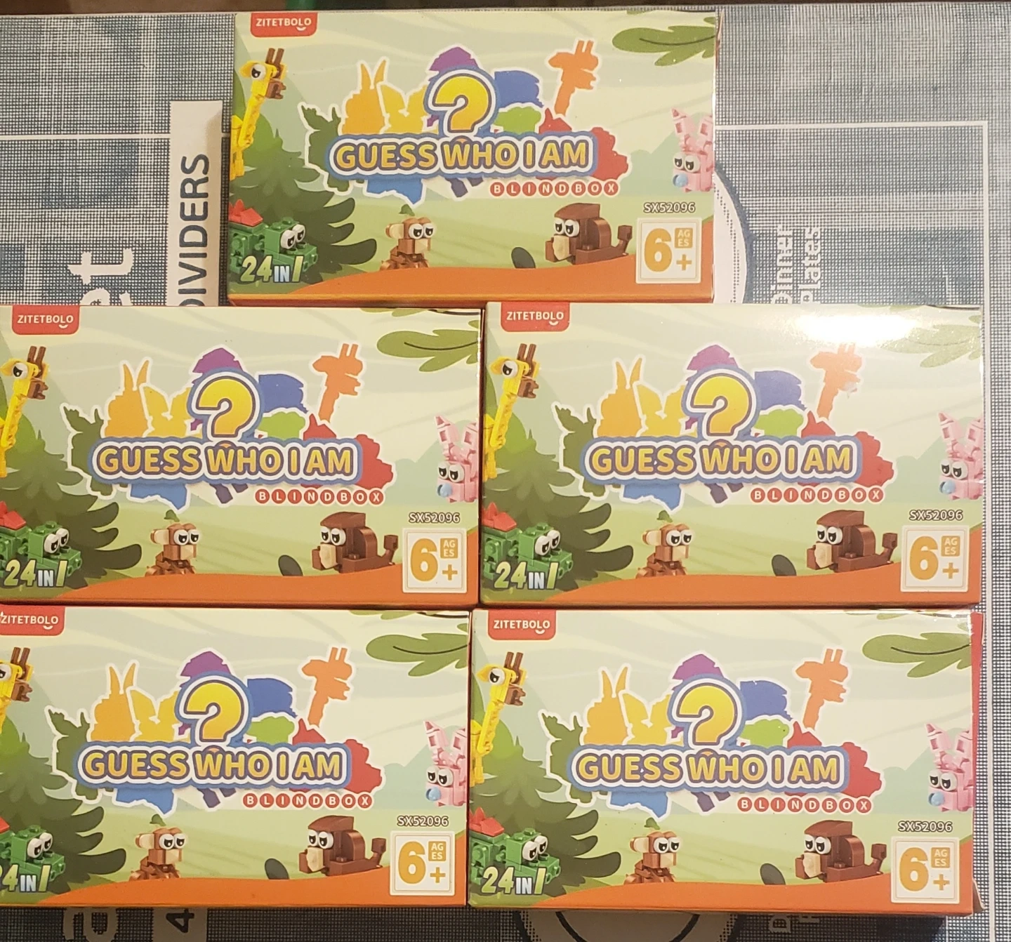 Set of 5 boxes, each is a surprise (24 different possibilities). Animal figures made from building blocks. It's designed for ages 6 and up, offering a fun way to build and identify various creatures. Great for creative play! Brand new, cash only pickup in Queens NY