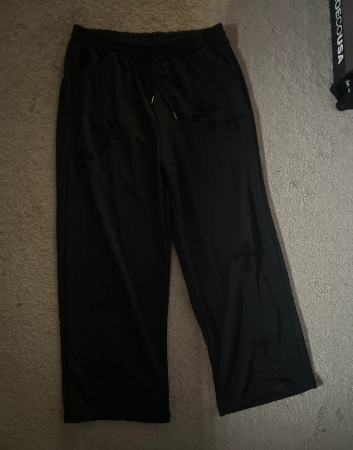 Selling a pair of Chrome Hearts black sweatpants. They feature a stylish design and comfortable fit. Perfect for casual wear!
