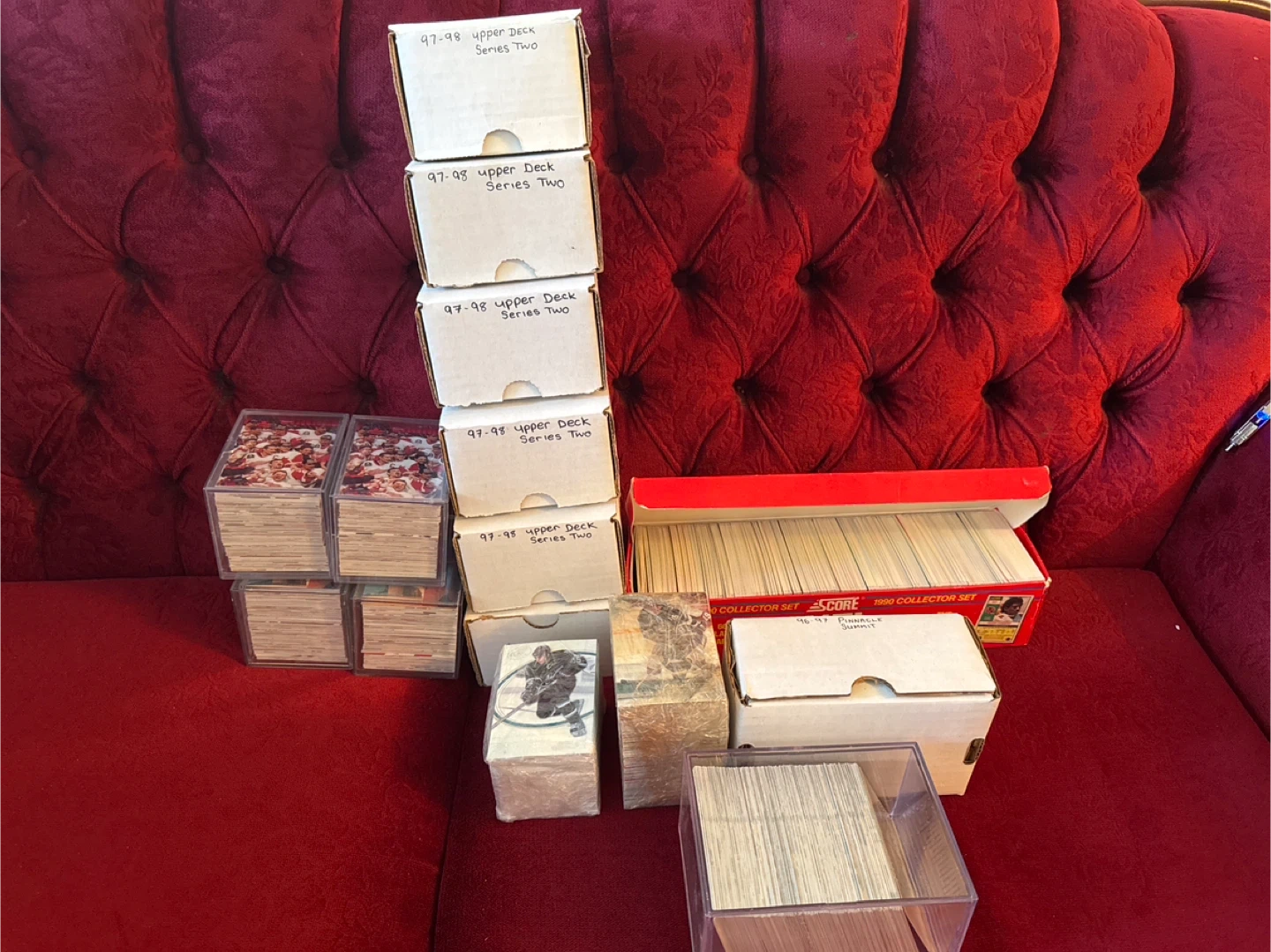 Selling a collection of hockey and football cards. Includes 97-98 Upper Deck Series Two and 1990 Collector Set cards. Great for any sports card enthusiast!