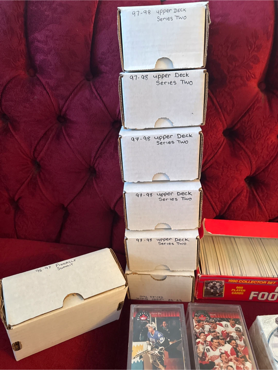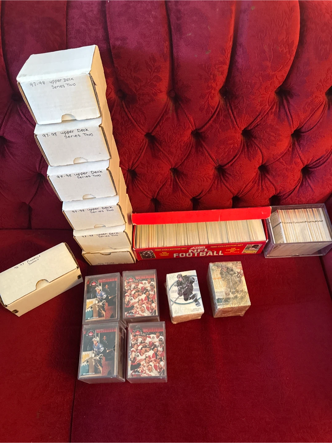 Selling a collection of hockey and football cards. Includes 97-98 Upper Deck Series Two and 1990 Collector Set cards. Great for any sports card enthusiast!