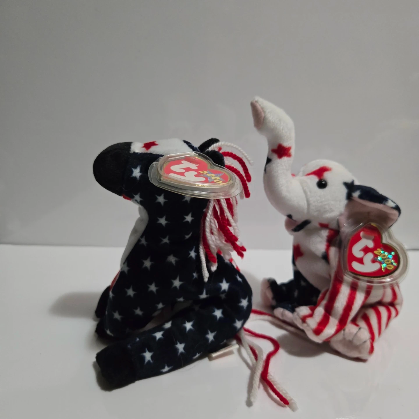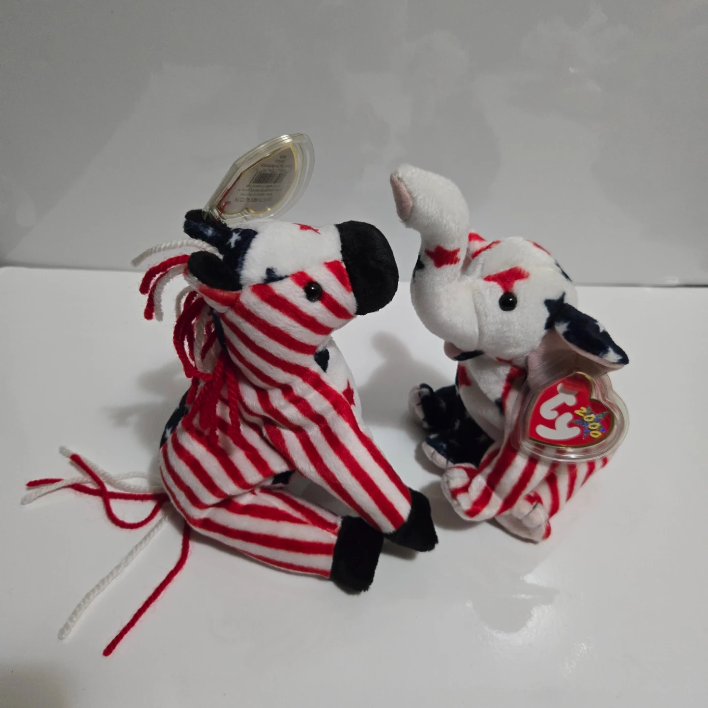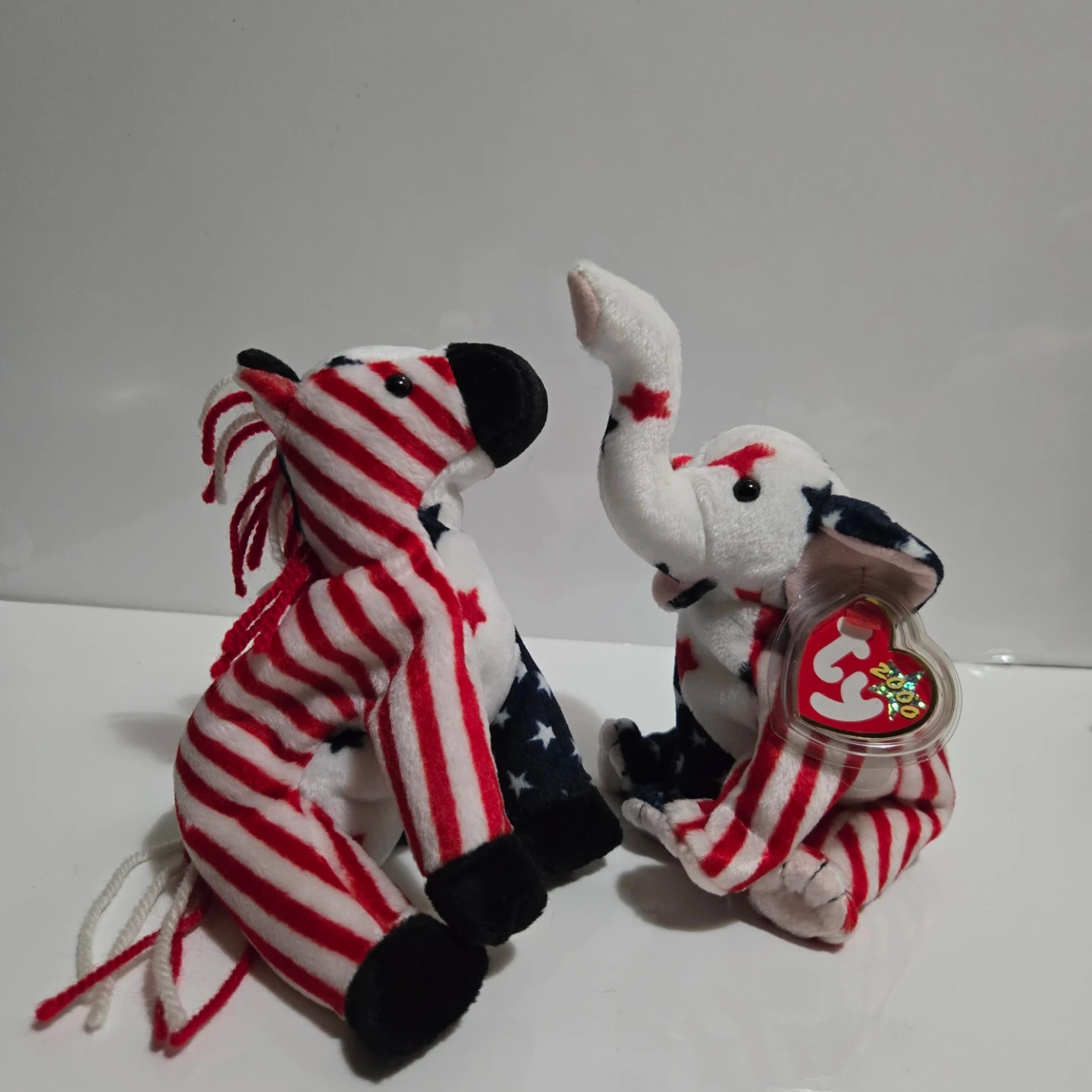 Selling two Ty Beanie Babies from the year 2000! They're both in excellent condition, featuring a patriotic theme with stars and stripes. Tag has protective case. A unique addition to any collection!