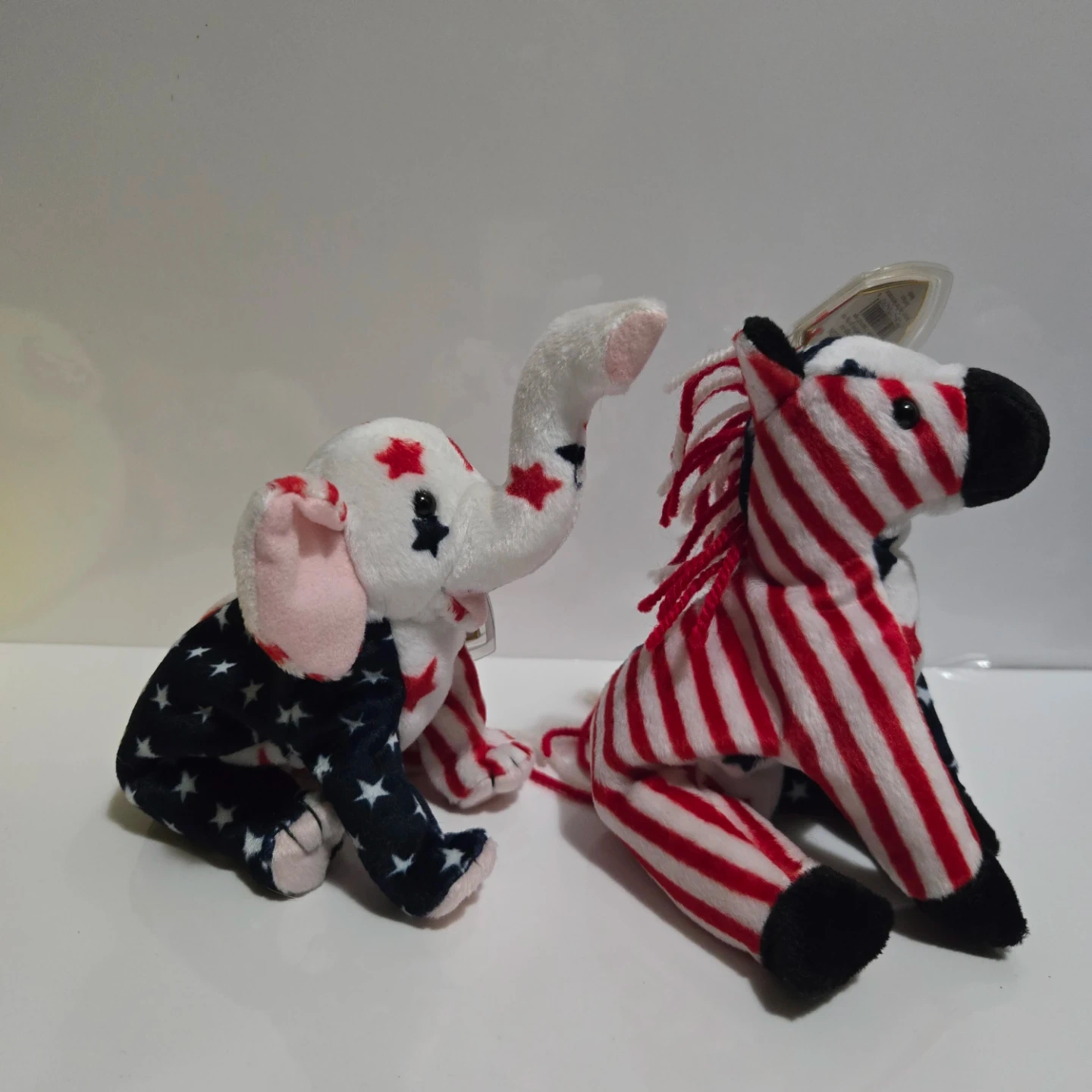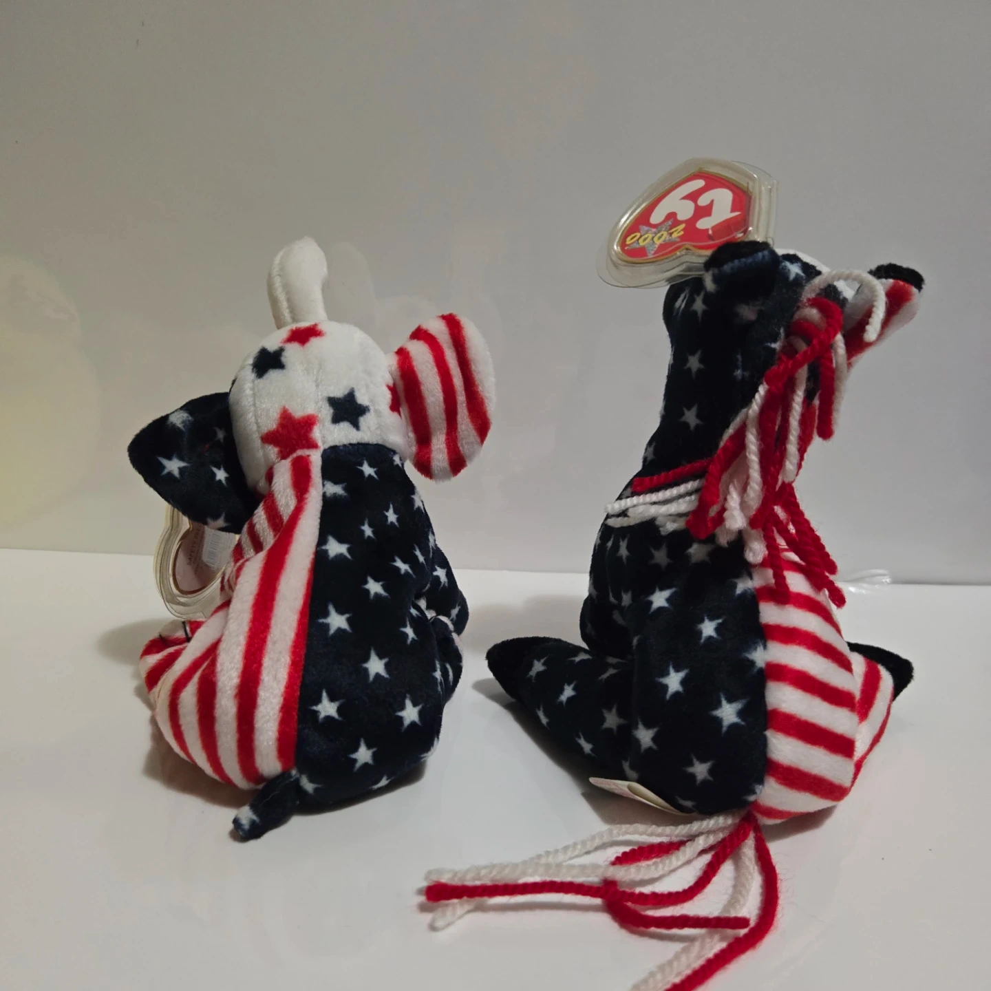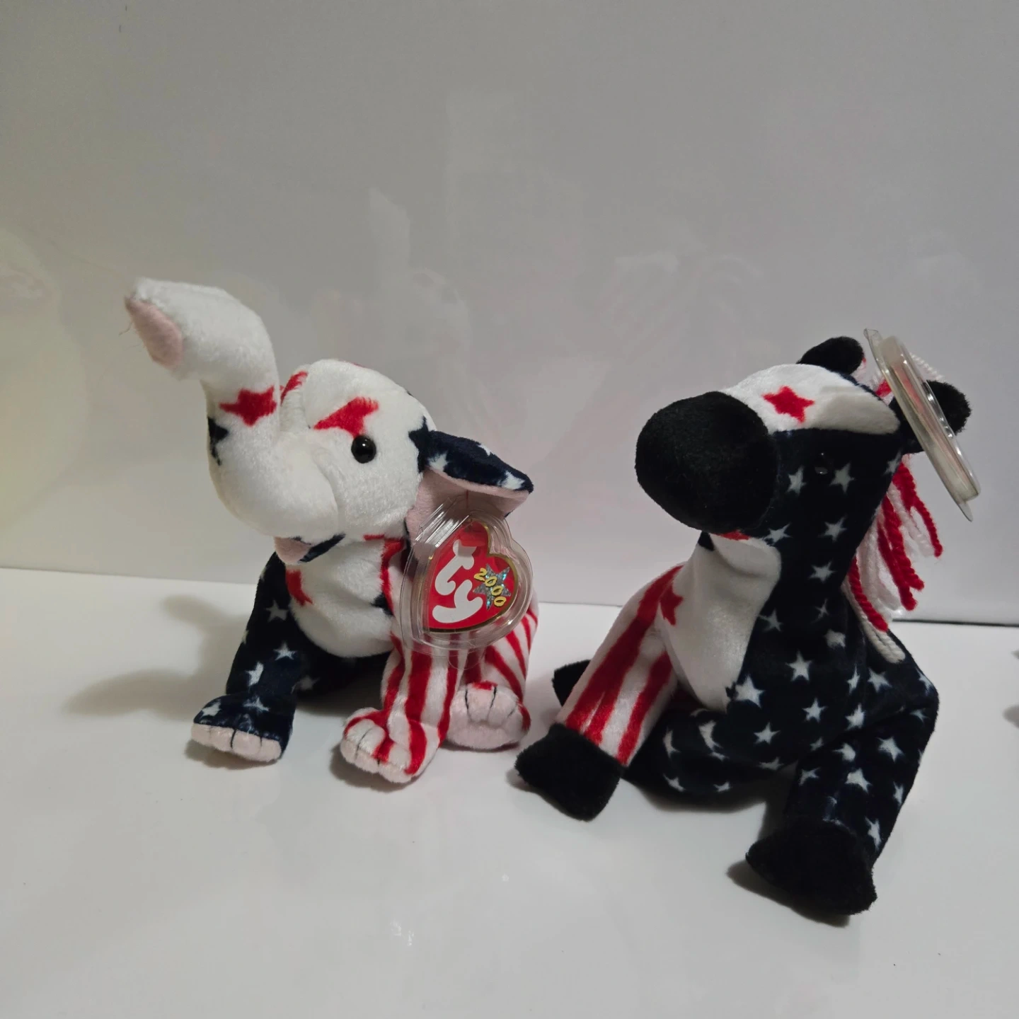 Selling two Ty Beanie Babies from the year 2000! They're both in excellent condition, featuring a patriotic theme with stars and stripes. Tag has protective case. A unique addition to any collection!