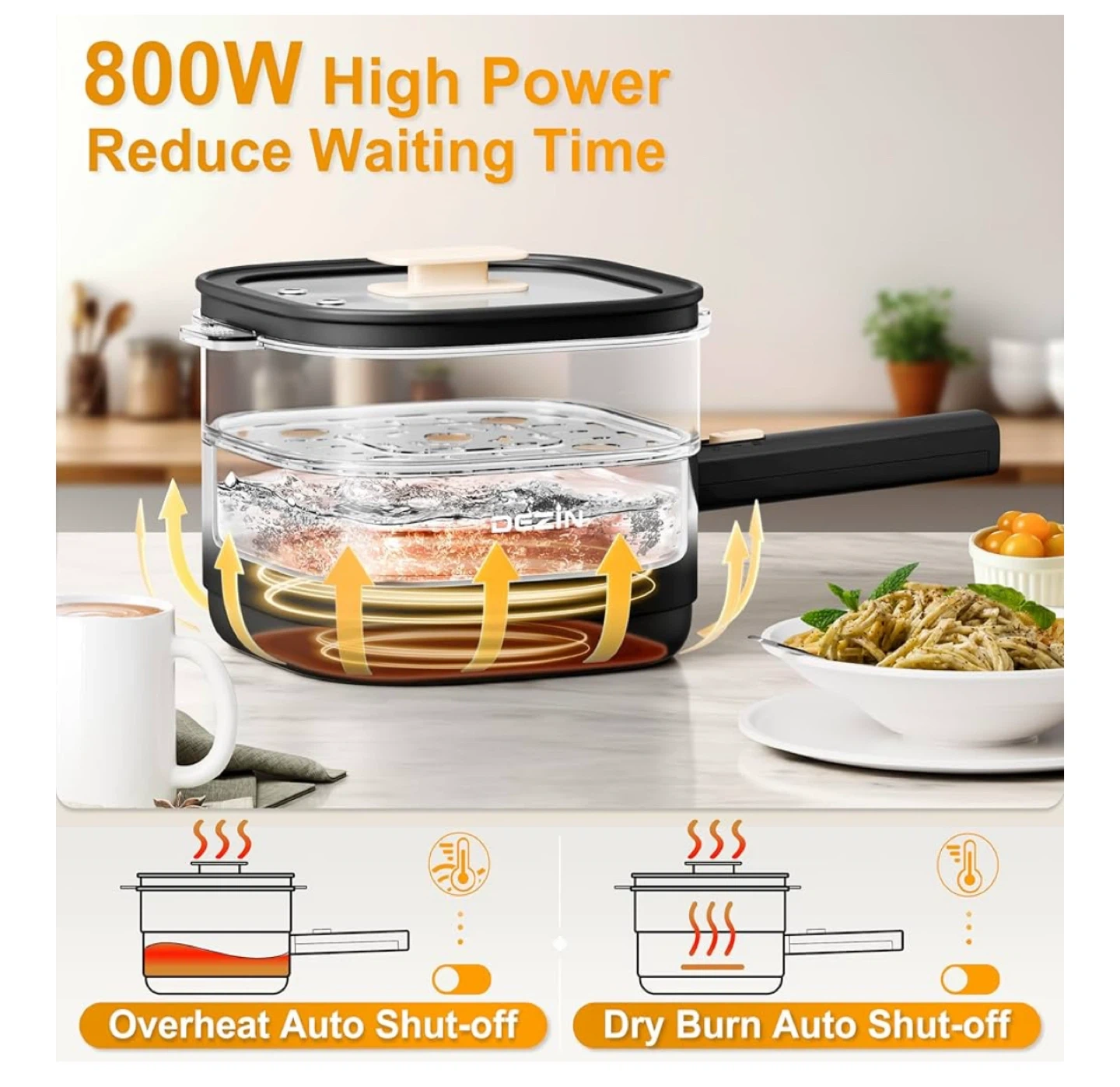 - Overheat and dry burn auto shut-off for safety