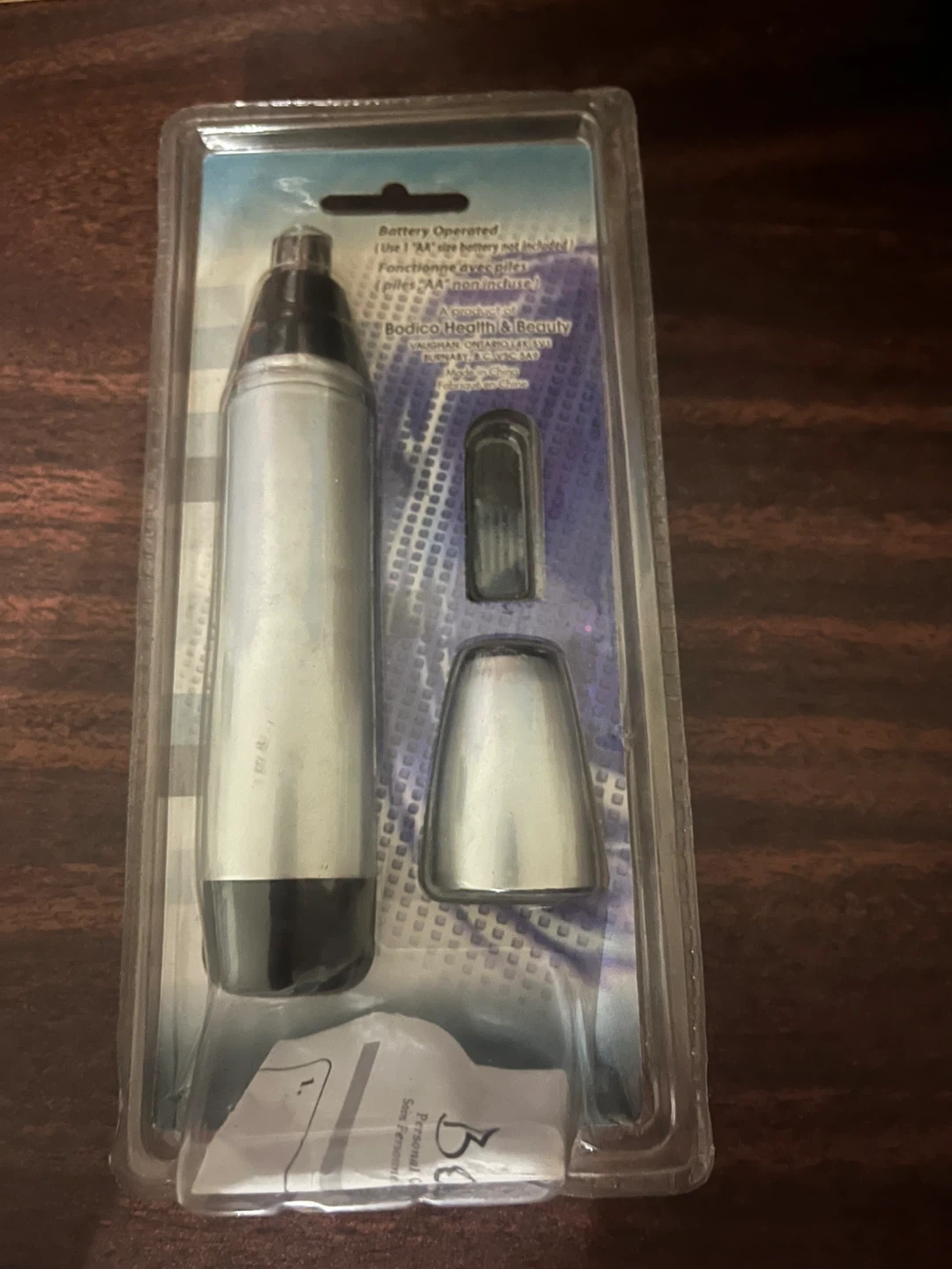 Nose and ear trimmer comes with a cleaning brush. It's battery operated and includes a protective cap. Keep your grooming tools tidy with the included brush!