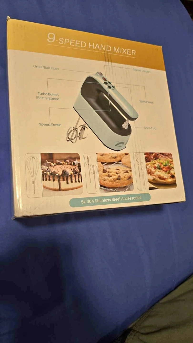 65Brand new 9-speed hand mixer, still in box (NEVER USED)! Perfect for baking cakes, cookies, pizza dough, and more. Includes 5 stainless steel accessories (beaters, dough hooks, and whisk). Features: •9-speed control with turbo boost •One-click eject button •Speed display •Start/Pause function •Powerful and easy to use Price: $40 Pickup Location: 1300 Mississauga Valley Blvd