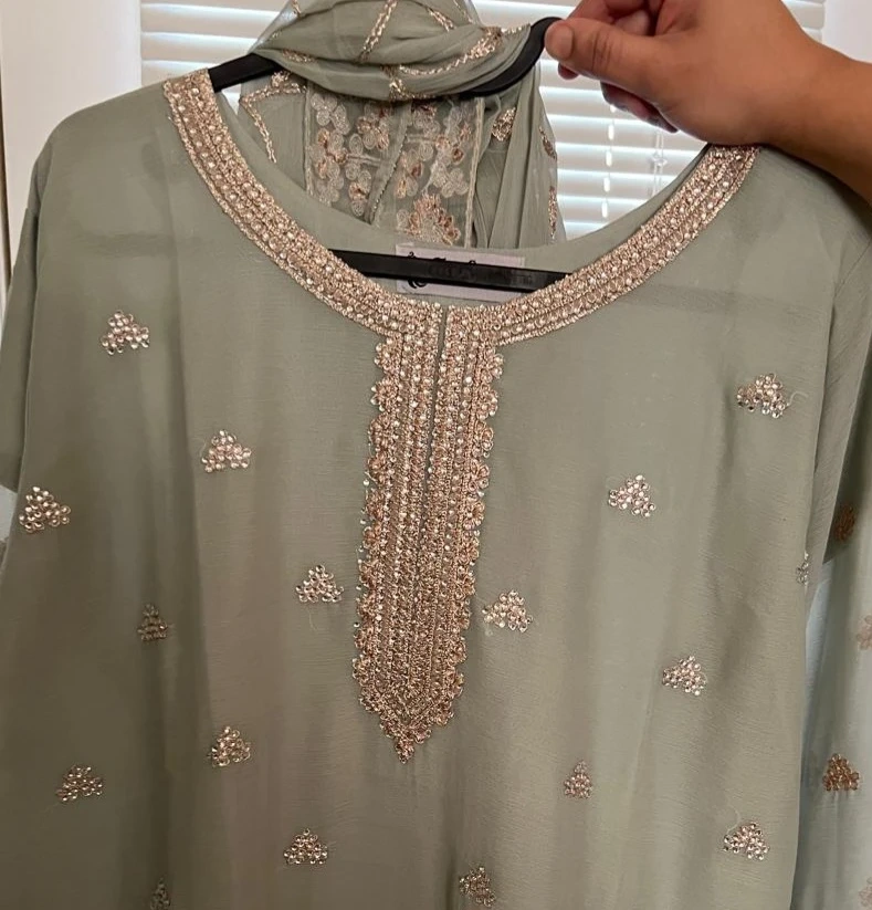 Beautiful mint green 4 pcs suit with Embroidery and stones work