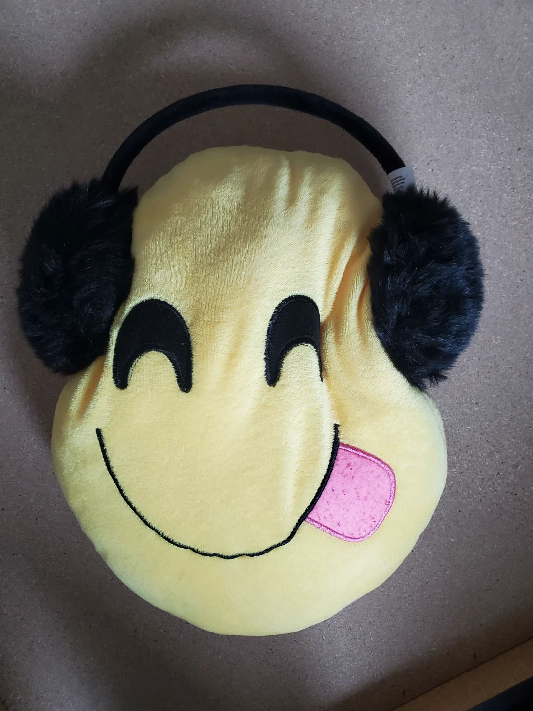 Soft black plush earmuffs designed to look like headphones. These are great for keeping warm in the winter! They're super cozy.