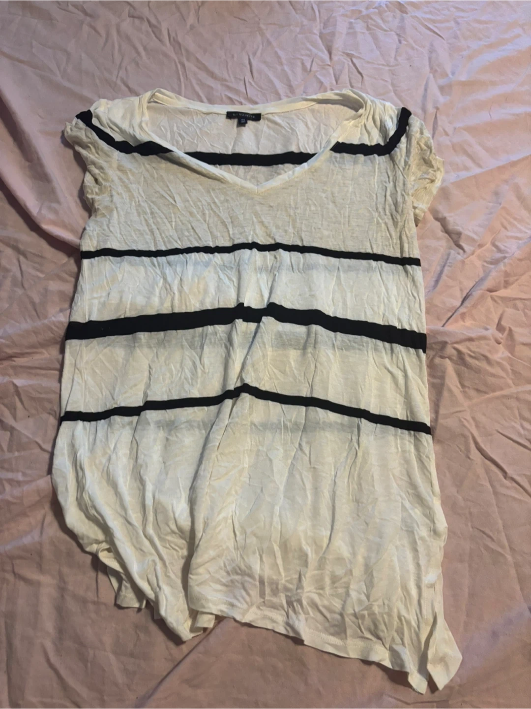 Selling a cute Dynamite T-shirt with black stripes! It's a size small and in great condition. Perfect for a casual look!