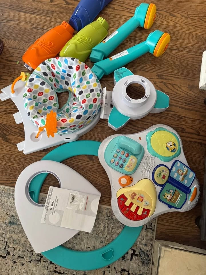 This 3-in-1 Stationary Activity Center is a versatile play set that converts from a stationary activity station to a walk around and play table. It features adjustable seat heights and various interactive toys. Condition is new in box all parts checked and working. Batteries not included. Pick up in Victoria Village.