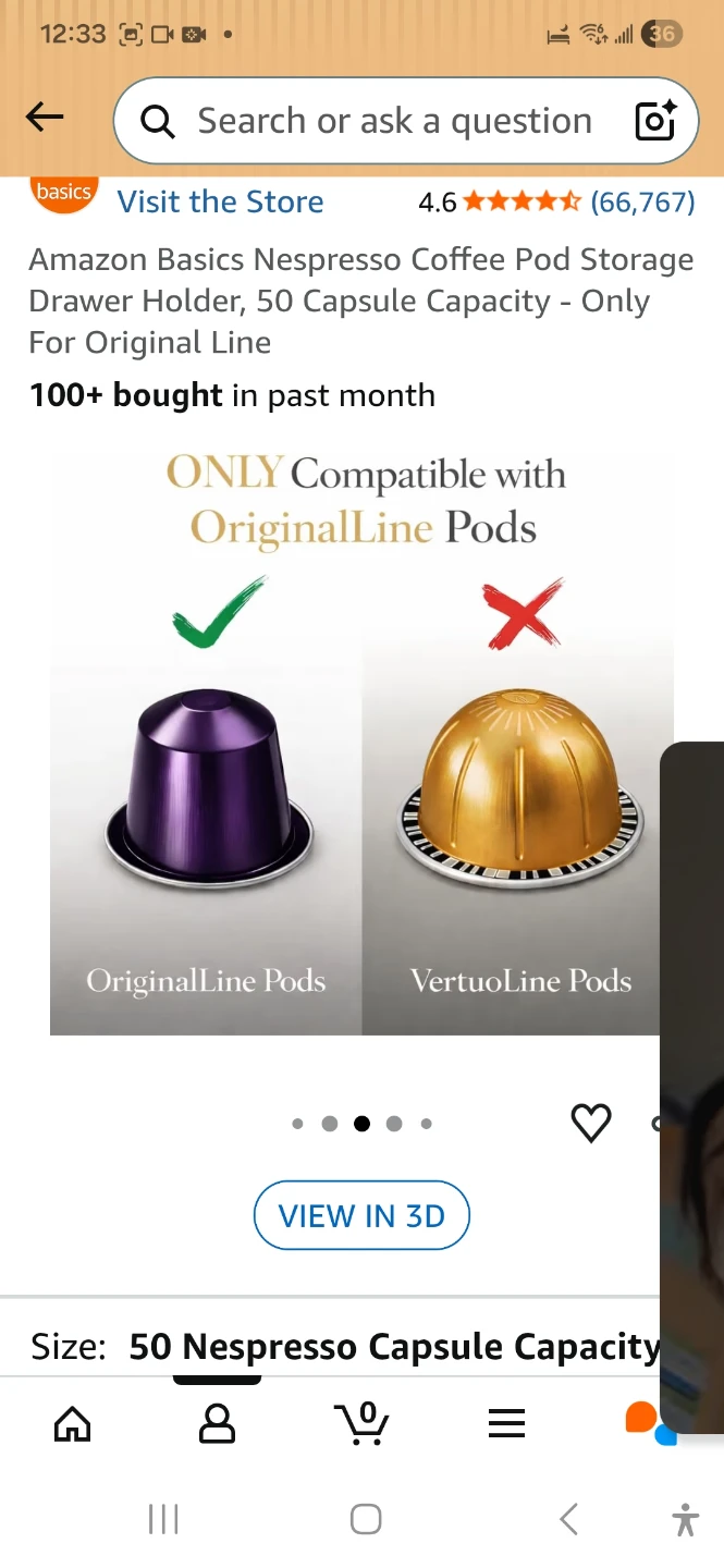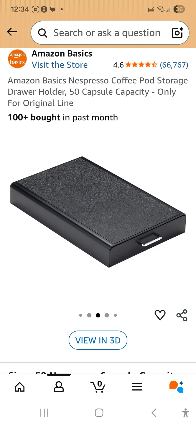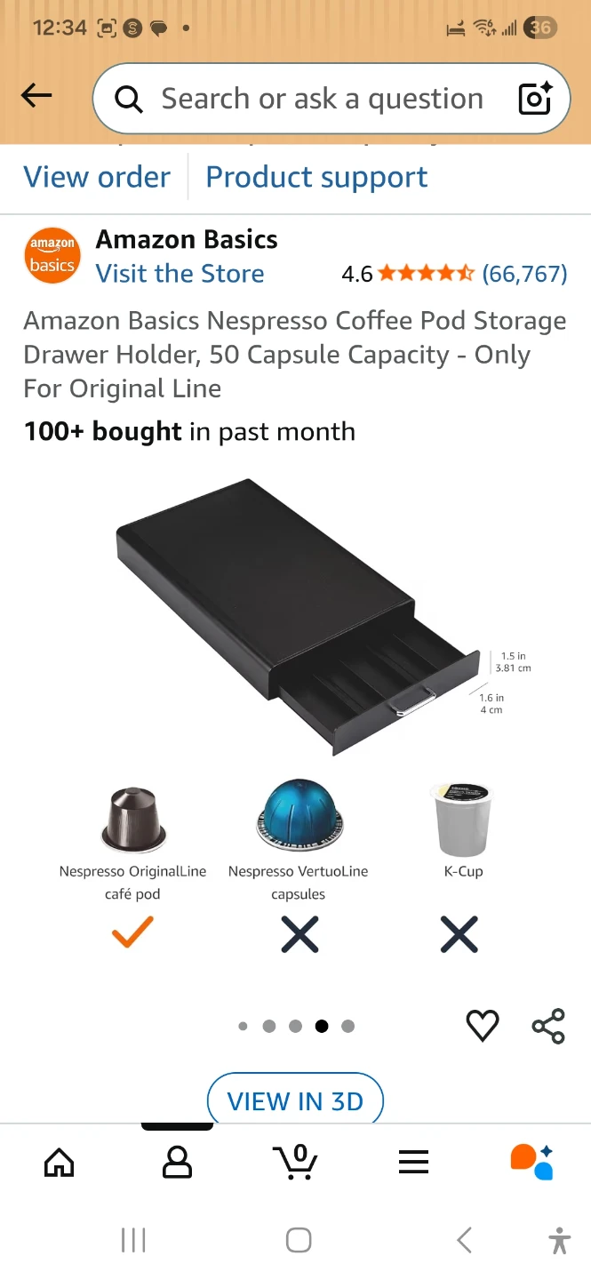 Brand new!!!! Still in box! This Amazon Basics drawer holder stores up to 50 Nespresso OriginalLine coffee pods. It's designed to fit Nespresso machines with a base smaller than 7.4 x 13.5 inches. The drawer slides out for easy access to your coffee pods.