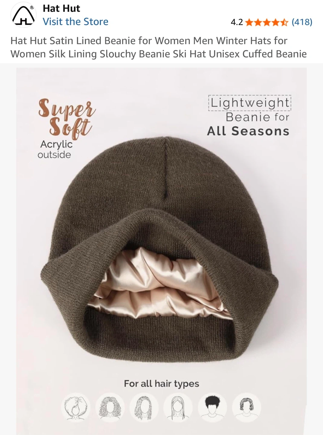 This Hat Hut beanie is satin lined to protect and shine your hair. It's unisex and super stretchy for a comfortable fit. The hat is one size for men, women, and teens. It's designed for everyone to share the fashion!