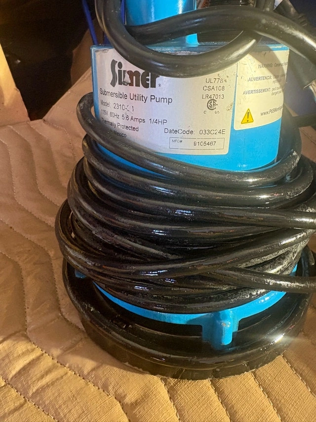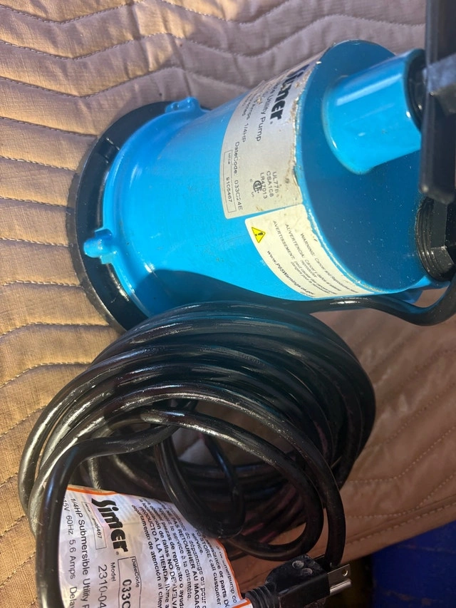 This Simer submersible utility pump is ideal for removing water from any location, such as a flooded basement or a pool, and it is in good used condition. This pump is a reliable and efficient solution for your water removal needs. I have tested the pump and it is fully functional. Specifications:
