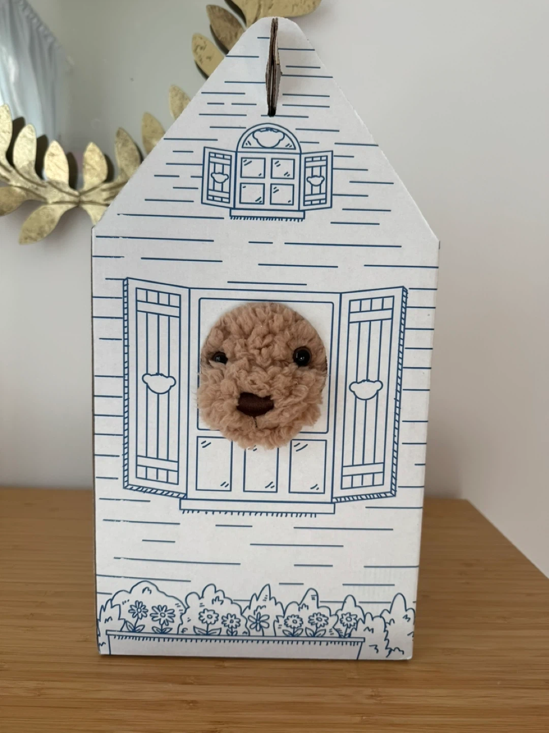 This is a soft, light brown teddy bear from Build-A-Bear Workshop. It's made of fuzzy plush material. Brand new and comes in its original house-shaped box. Looking for a friend to be adopted by💕