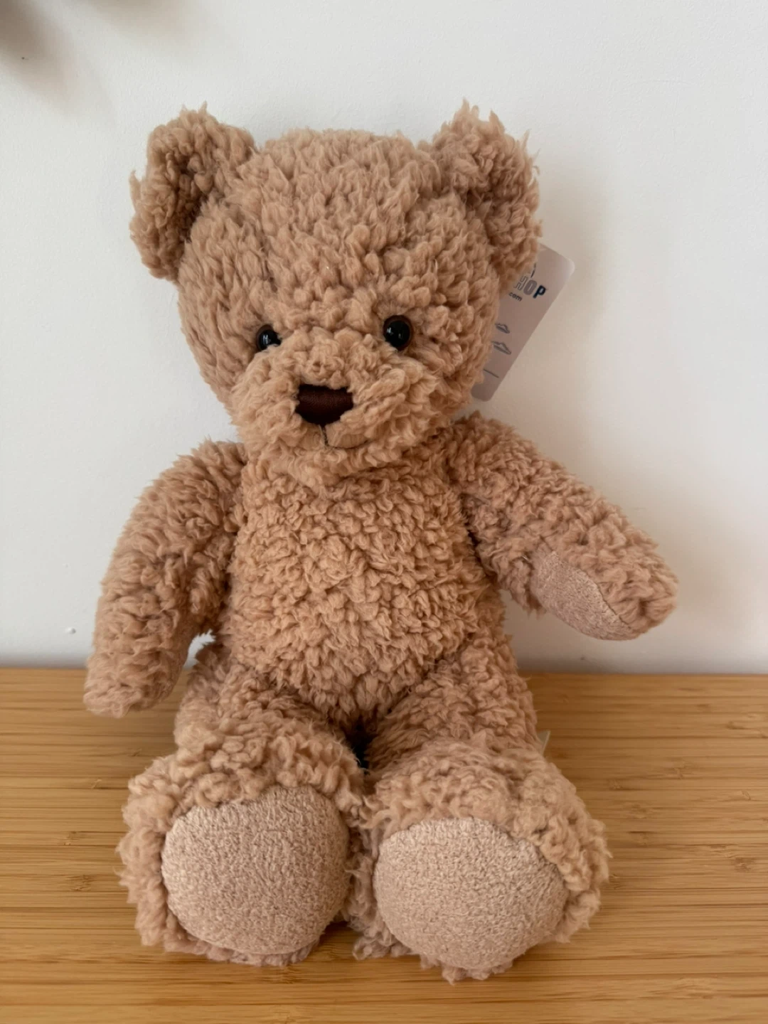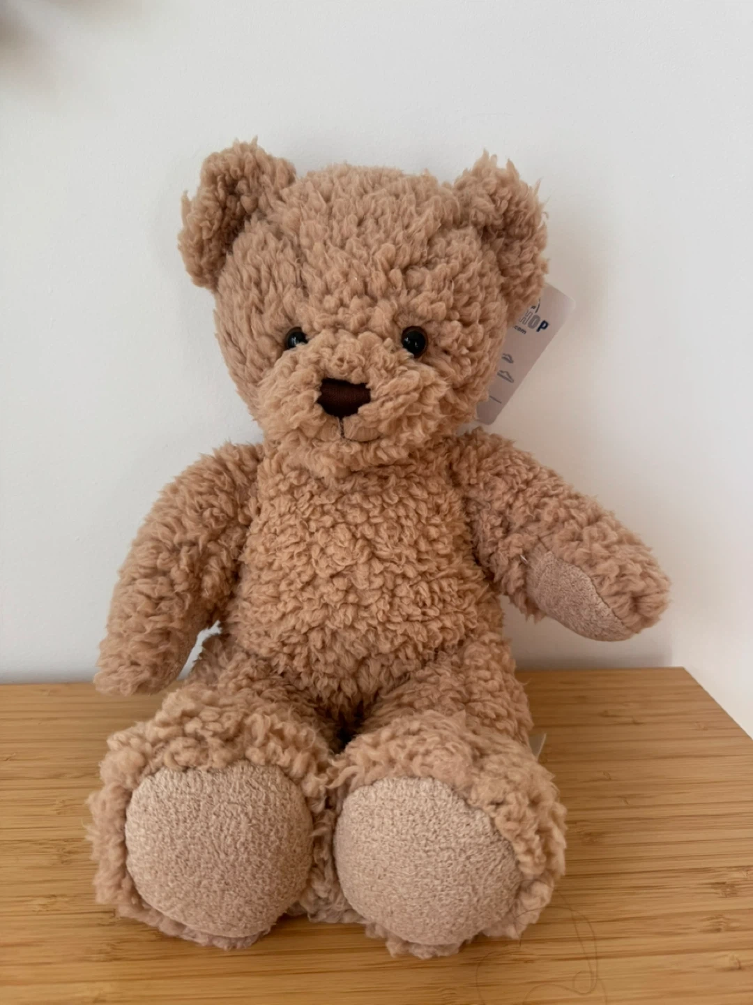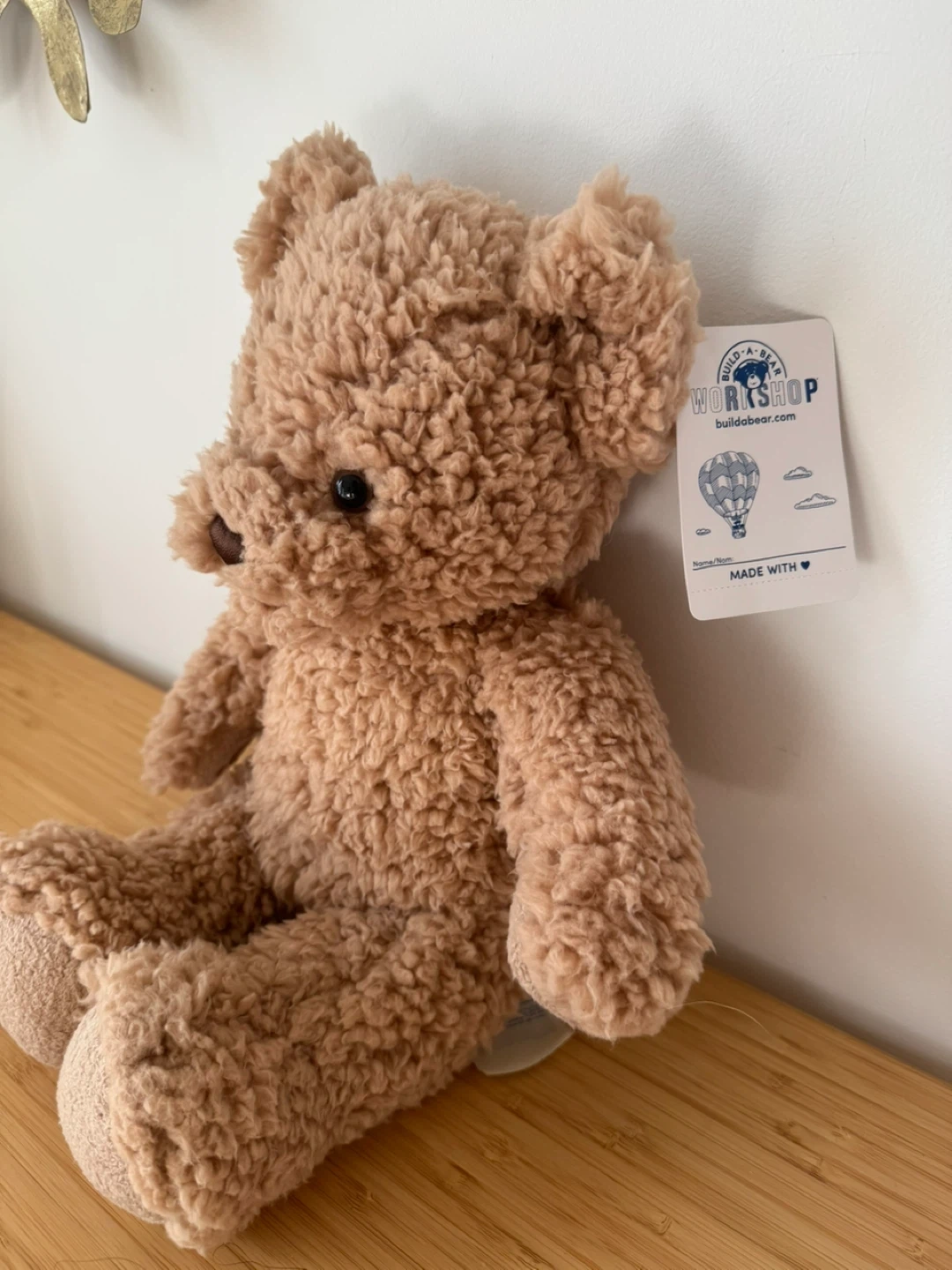 This is a soft, light brown teddy bear from Build-A-Bear Workshop. It's made of fuzzy plush material. Brand new and comes in its original house-shaped box. Looking for a friend to be adopted by💕