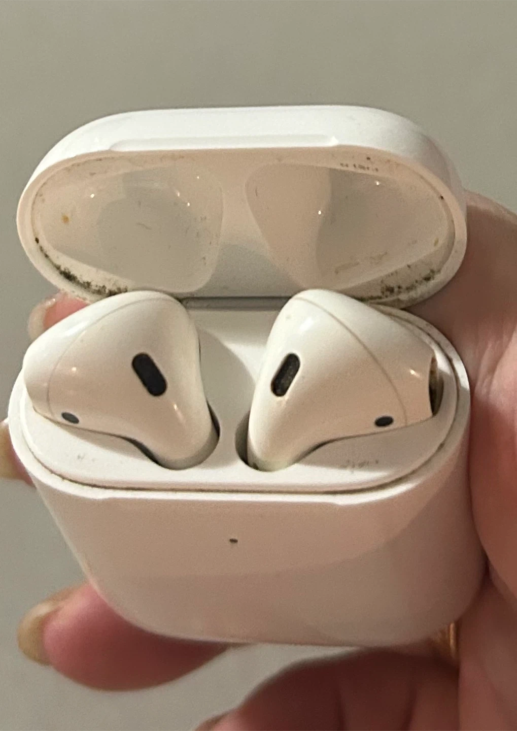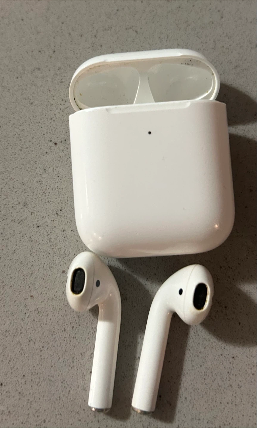 Apple AirPods (2nd generation) with charging case. These wireless earbuds is not working but if someone knows how to fix it, this could be a good chance.