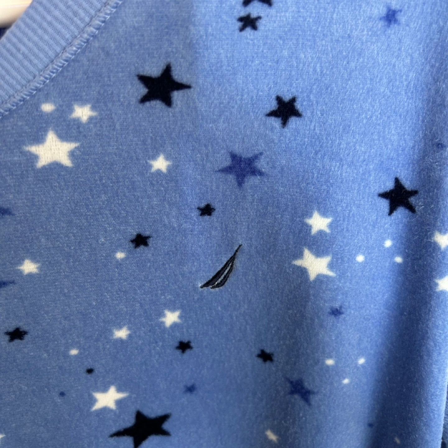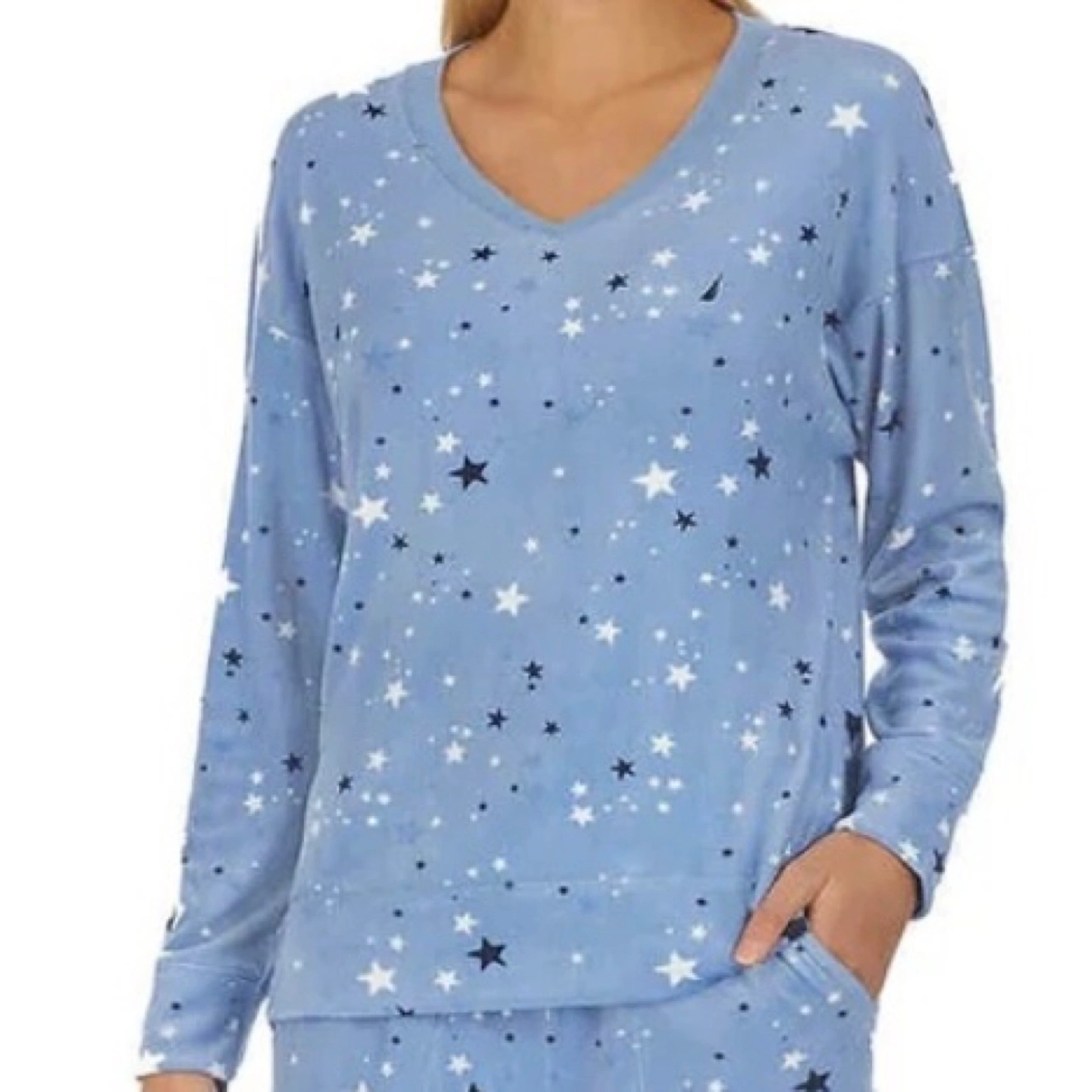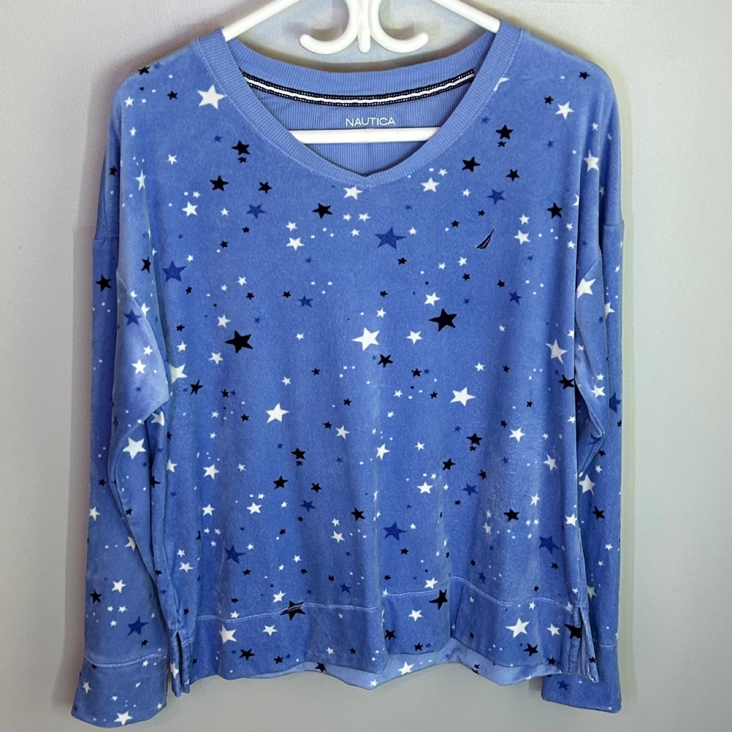 Nautica Silky Stretch Fleece Long Sleeve V Neck Top Stars Size M