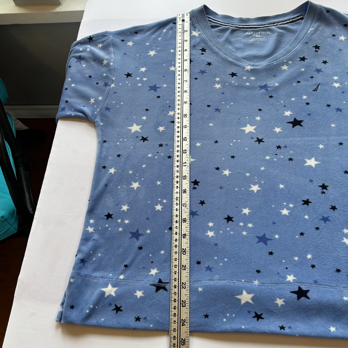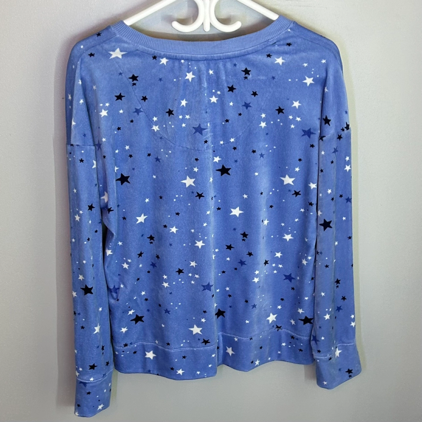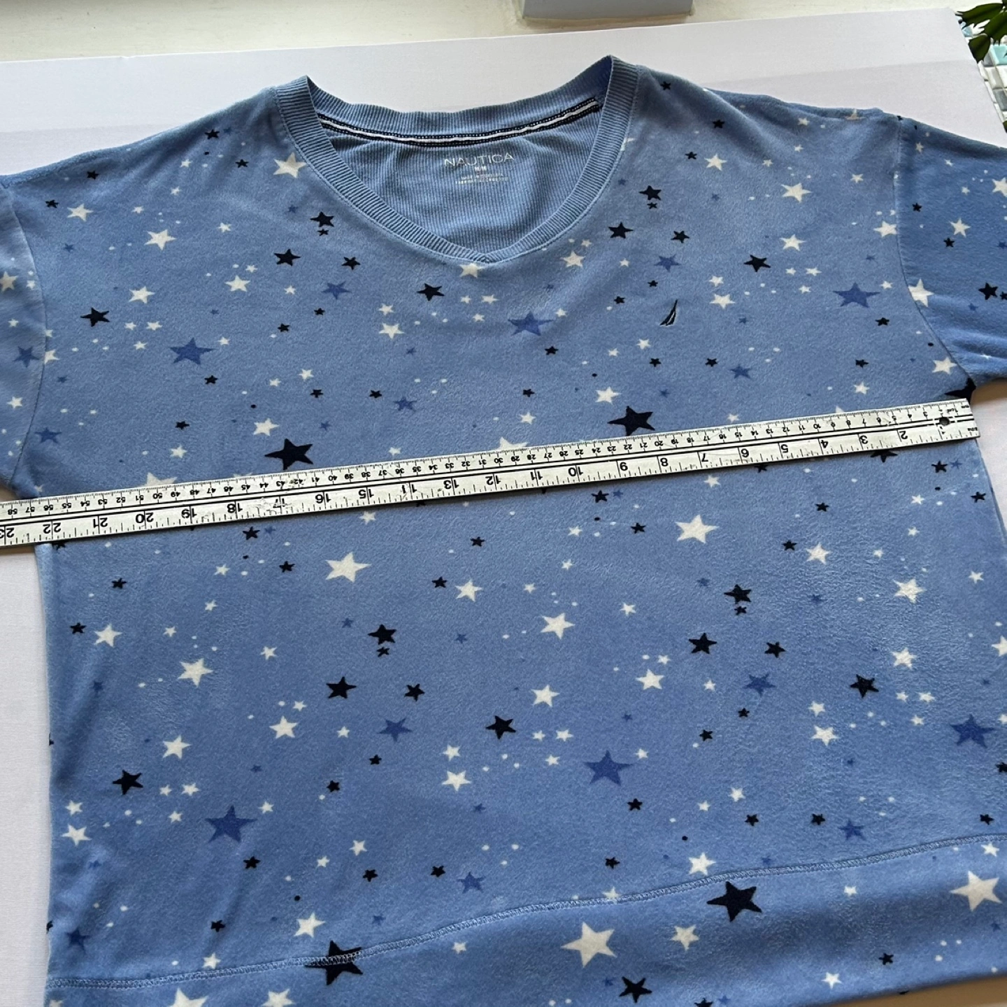 Nautica Silky Stretch Fleece Long Sleeve V Neck Top Stars Size M