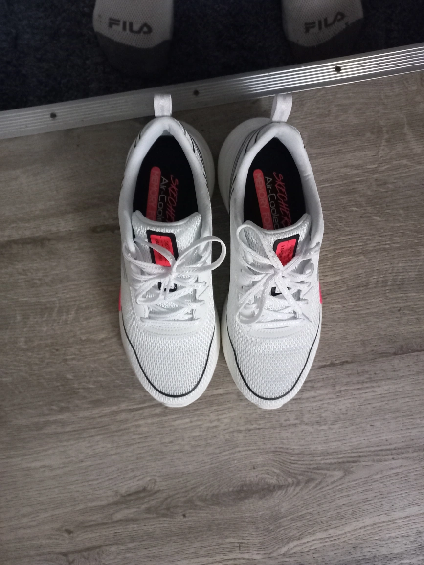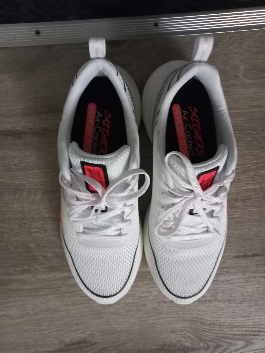 White sketchers shoes with box
