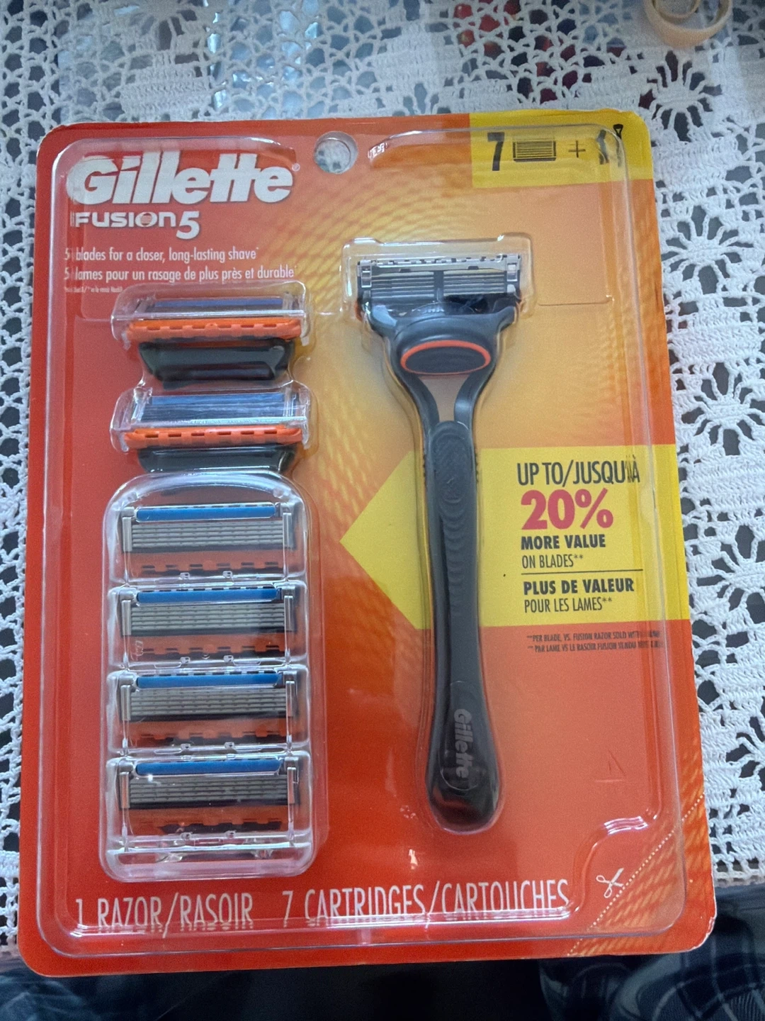 Get a close, long-lasting shave with the Gillette Fusion 5 razor. This package includes one razor handle and seven replacement cartridges. The cartridges feature 5 blades for a superior shave.