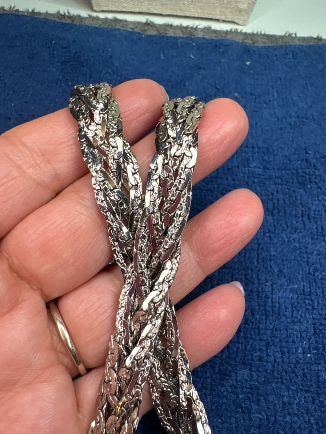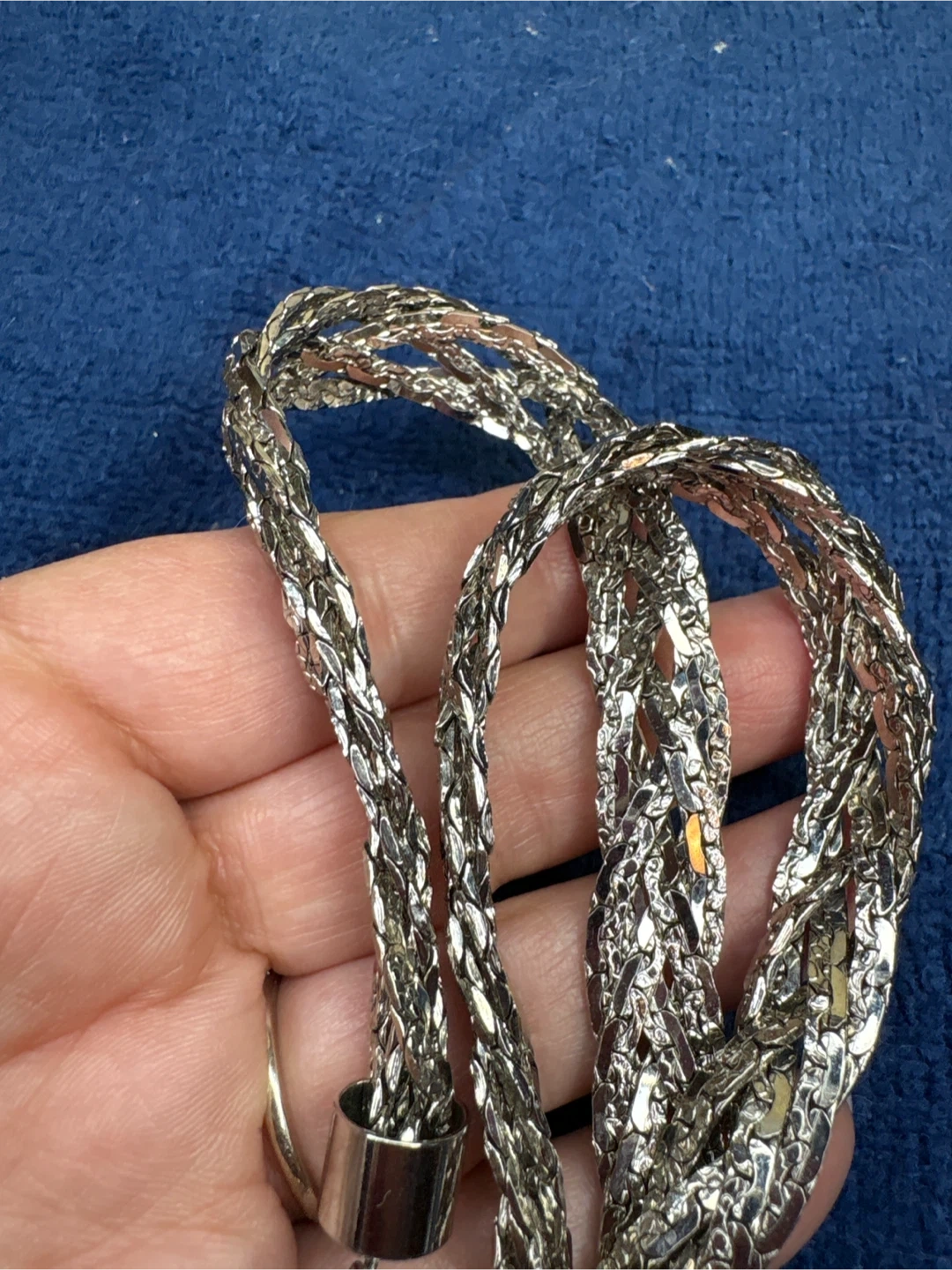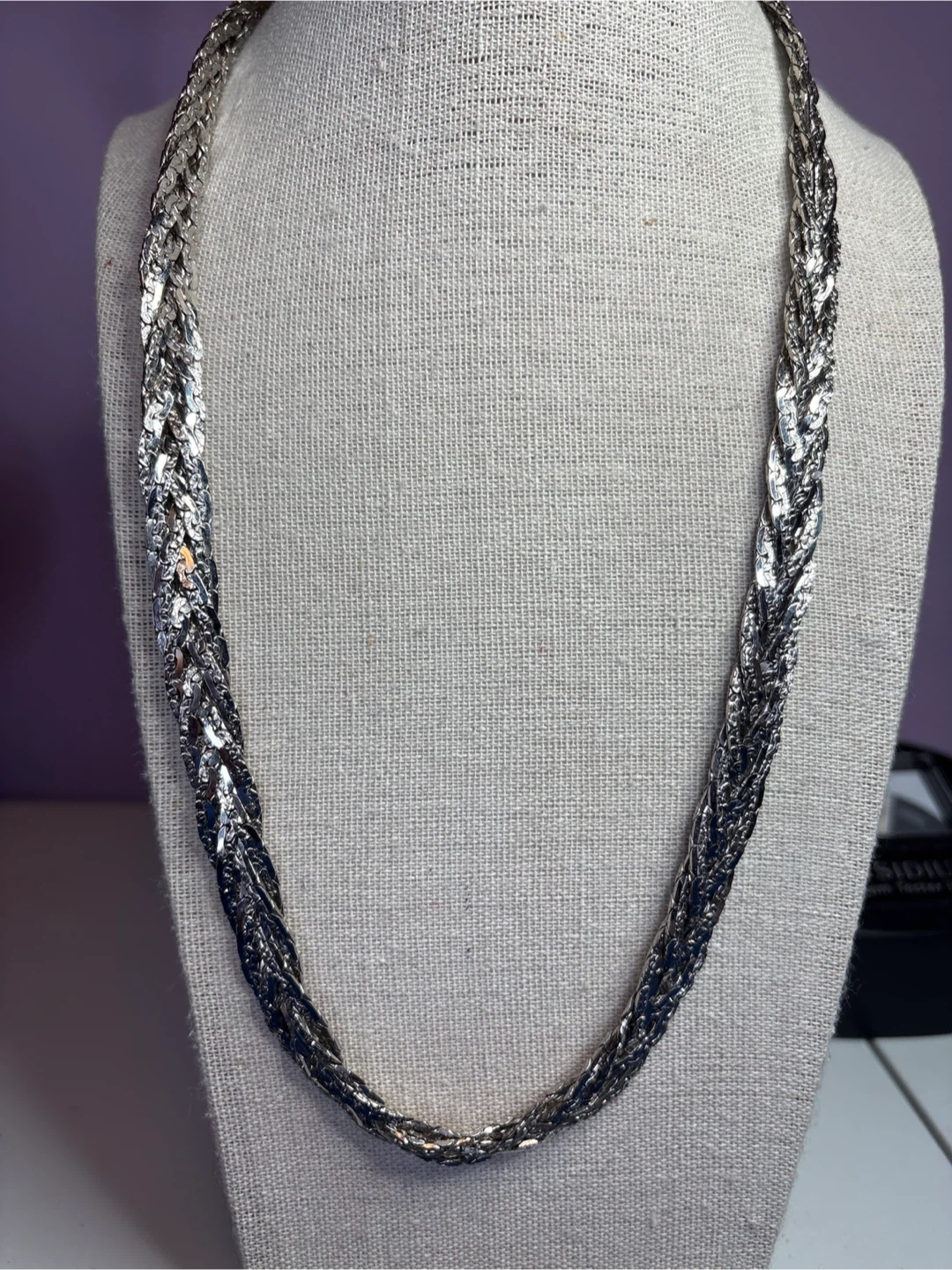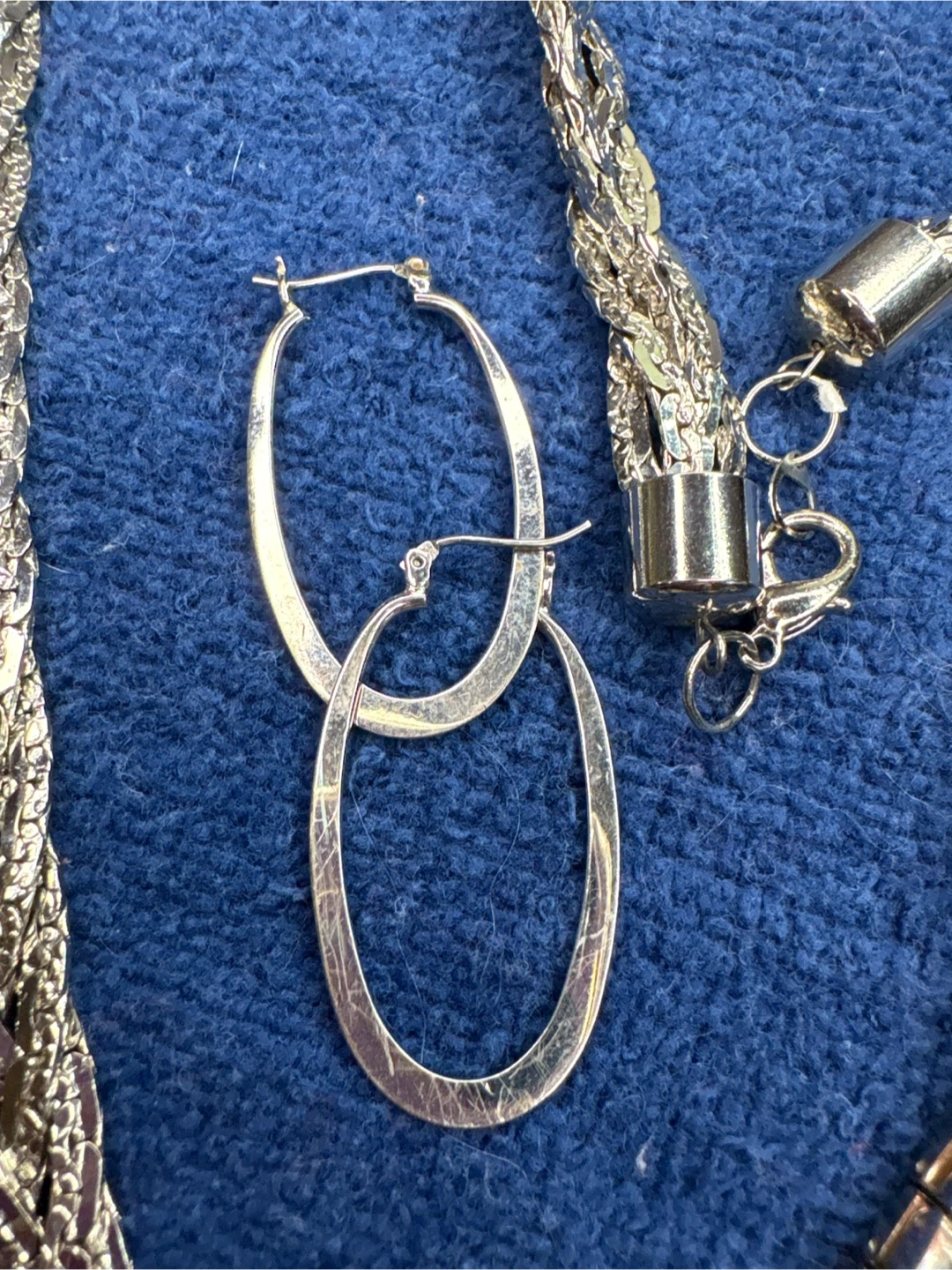 This is a stylish silver-tone Singapore Movement watch with a crystal-embellished bezel and a stainless steel braided necklace that is 22 inches long. It includes a pair of oval silver tone hoop earrings. The watch features a quartz movement and a stainless steel case back. Perfect for adding a touch of sparkle to any outfit!