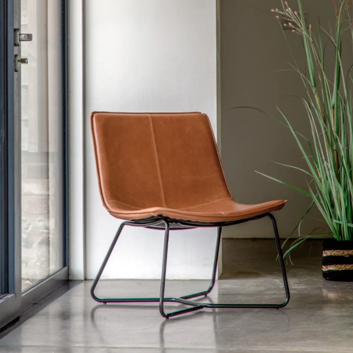 Brown Leather Accent Lounge Chair with Black Metal Frame