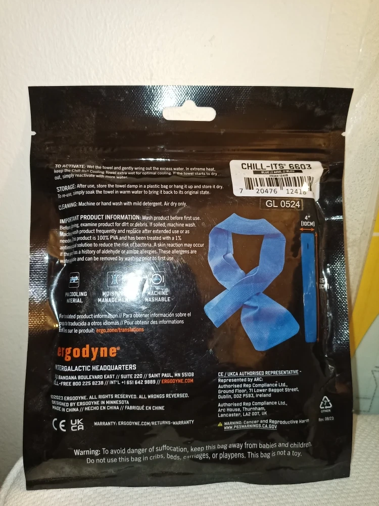 This Ergodyne cooling neck wrap provides instant cooling for up to 4 hours. It's machine washable and made with 100% PVA material. Simply wet the towel and wring out excess water for optimal cooling.