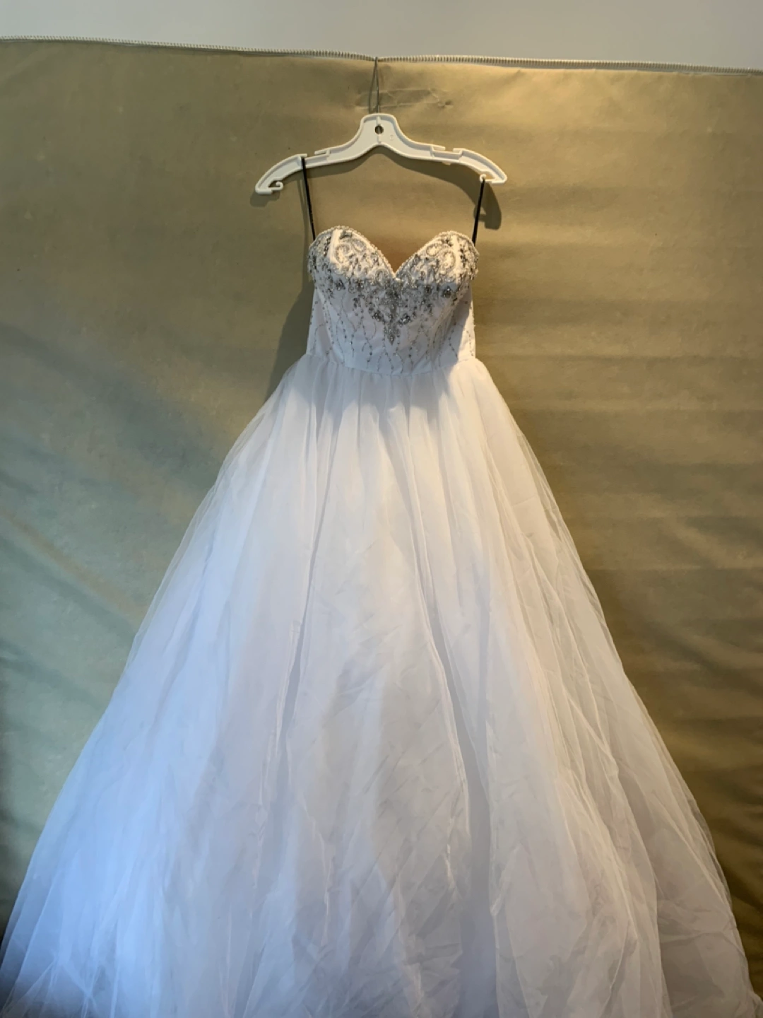 Wedding dress tulle princess dress - never worn Has sweetheart bodice with crystals and beading and long train in back. Size 6 , pick up in Vaughan or king