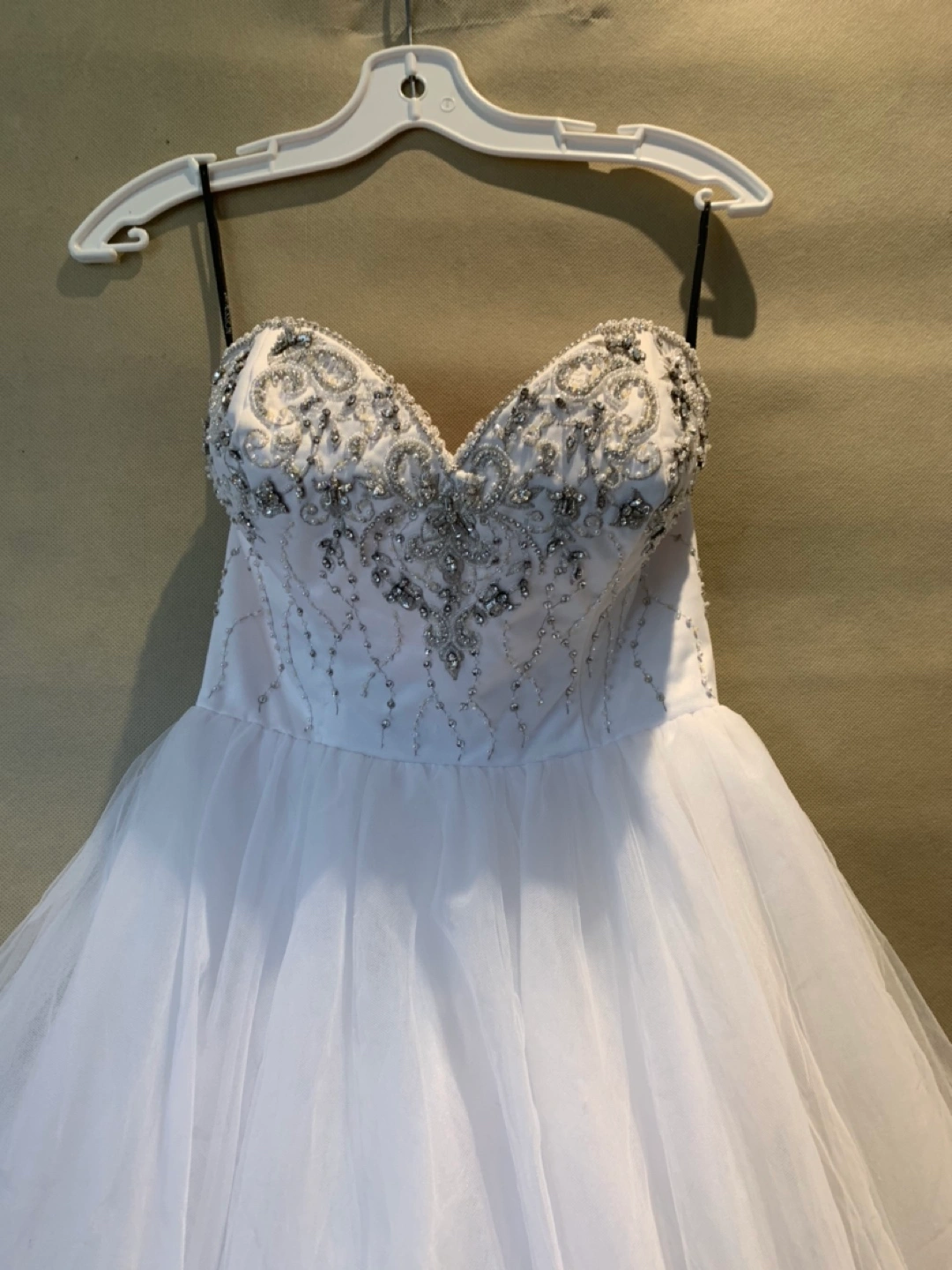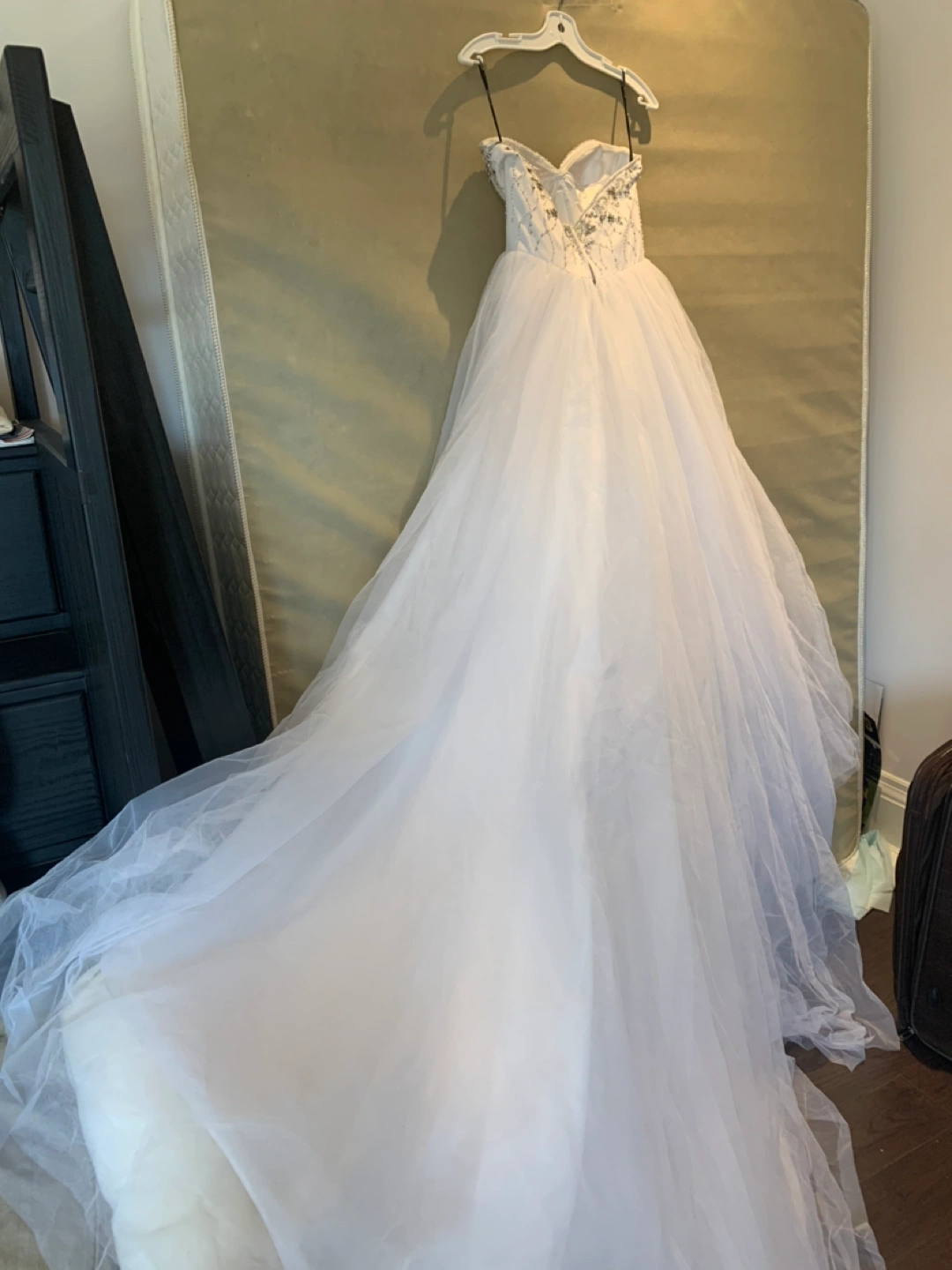 Wedding dress tulle princess dress - never worn Has sweetheart bodice with crystals and beading and long train in back. Size 6 , pick up in Vaughan or king