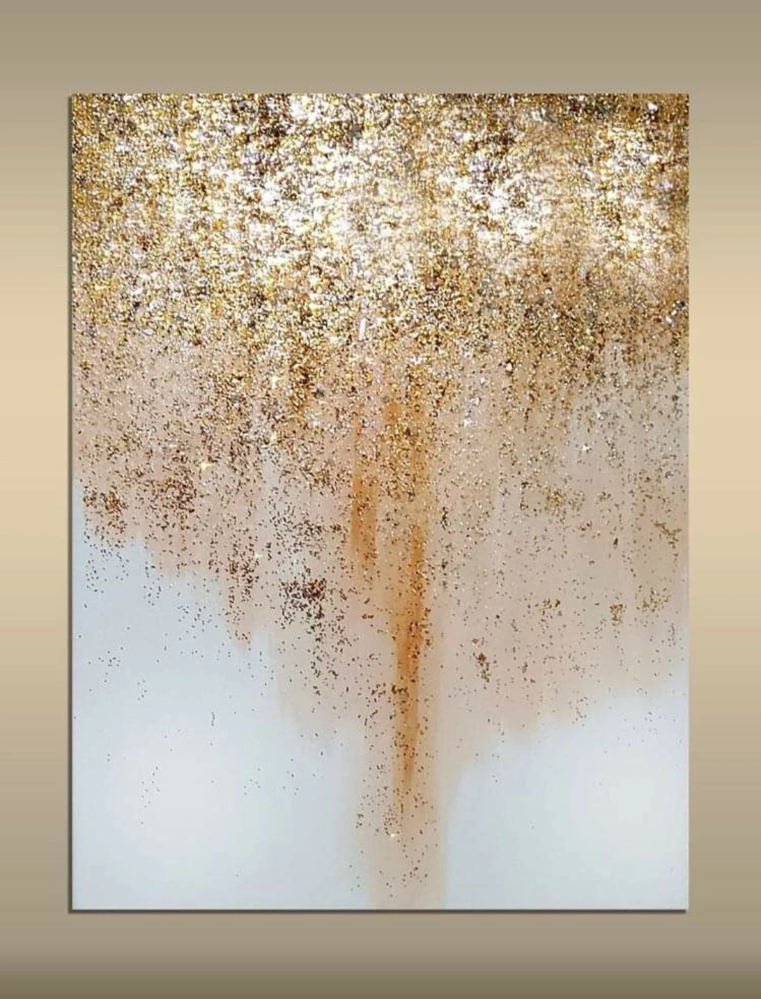Made by acrylic colors, Glitter, crushed glass pieces, framed canvas painting.
