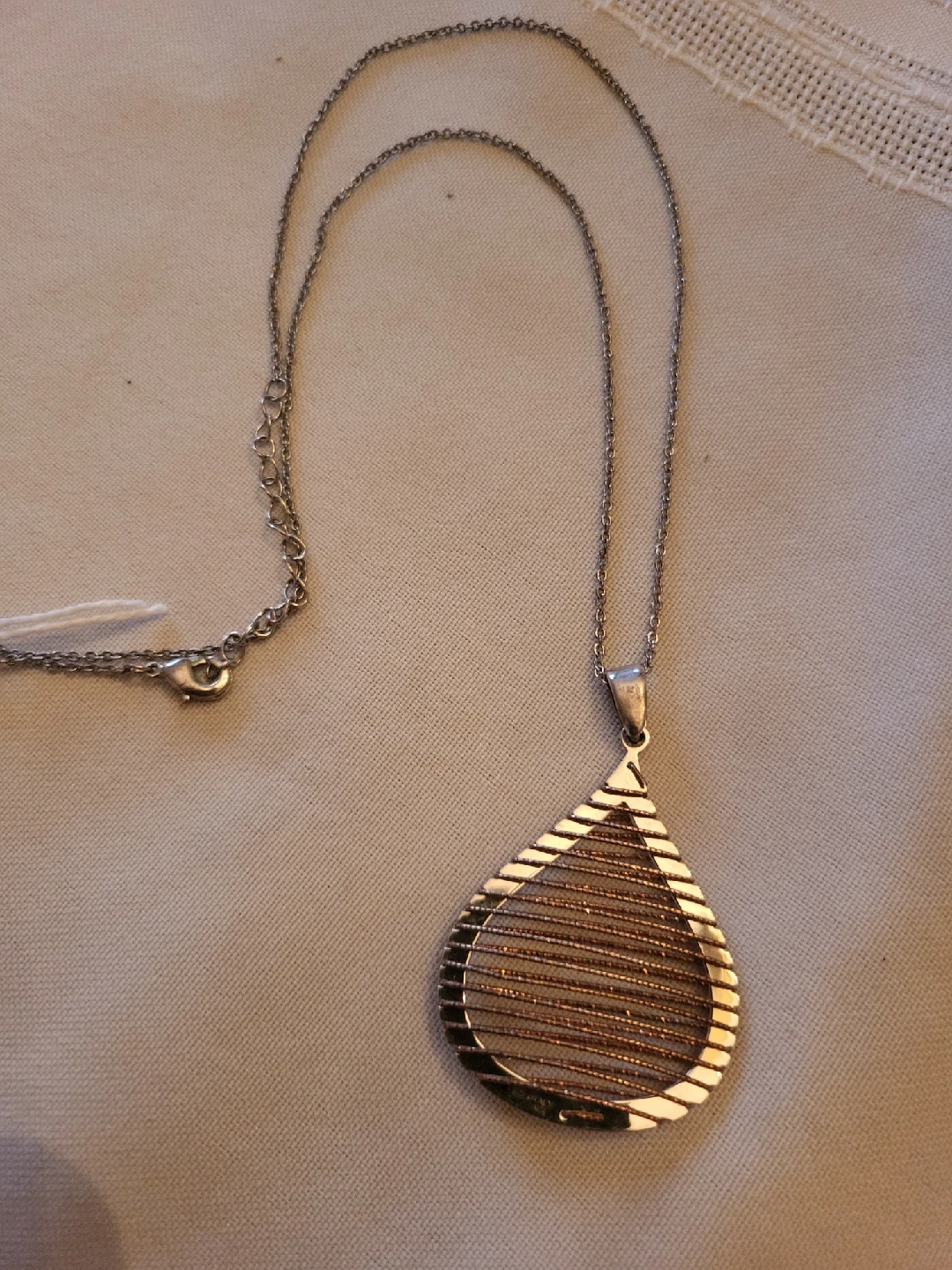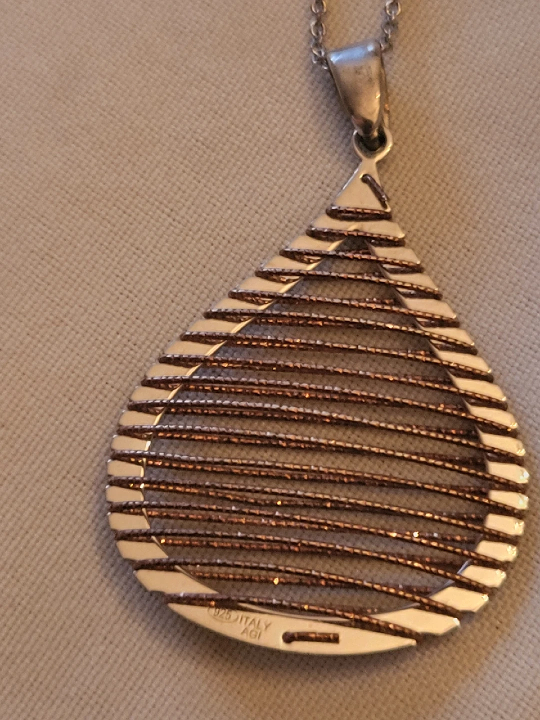 134Here's a lovely teardrop pendant necklace marked '925 Italy AGI'. It's in great condition and ready to add a touch of elegance to any outfit.