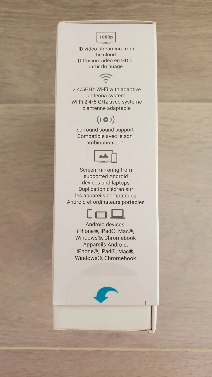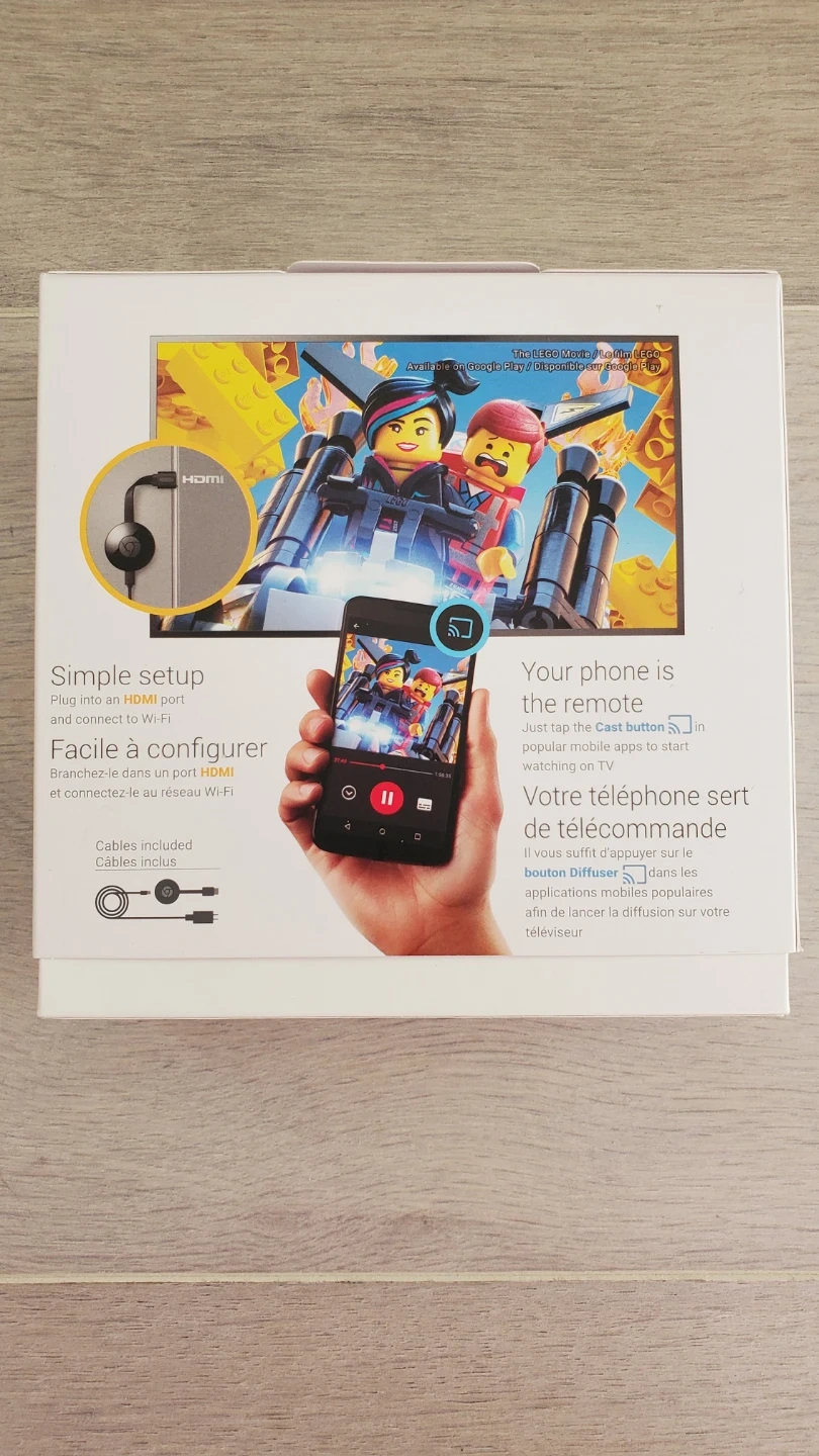 Stream TV shows, movies, music, sports, and games from your phone to your TV. Connects via HDMI and Wi-Fi. HD video streaming from the cloud. Supports screen mirroring from Android devices and laptops. Surround sound support. Includes power adapter and cables.