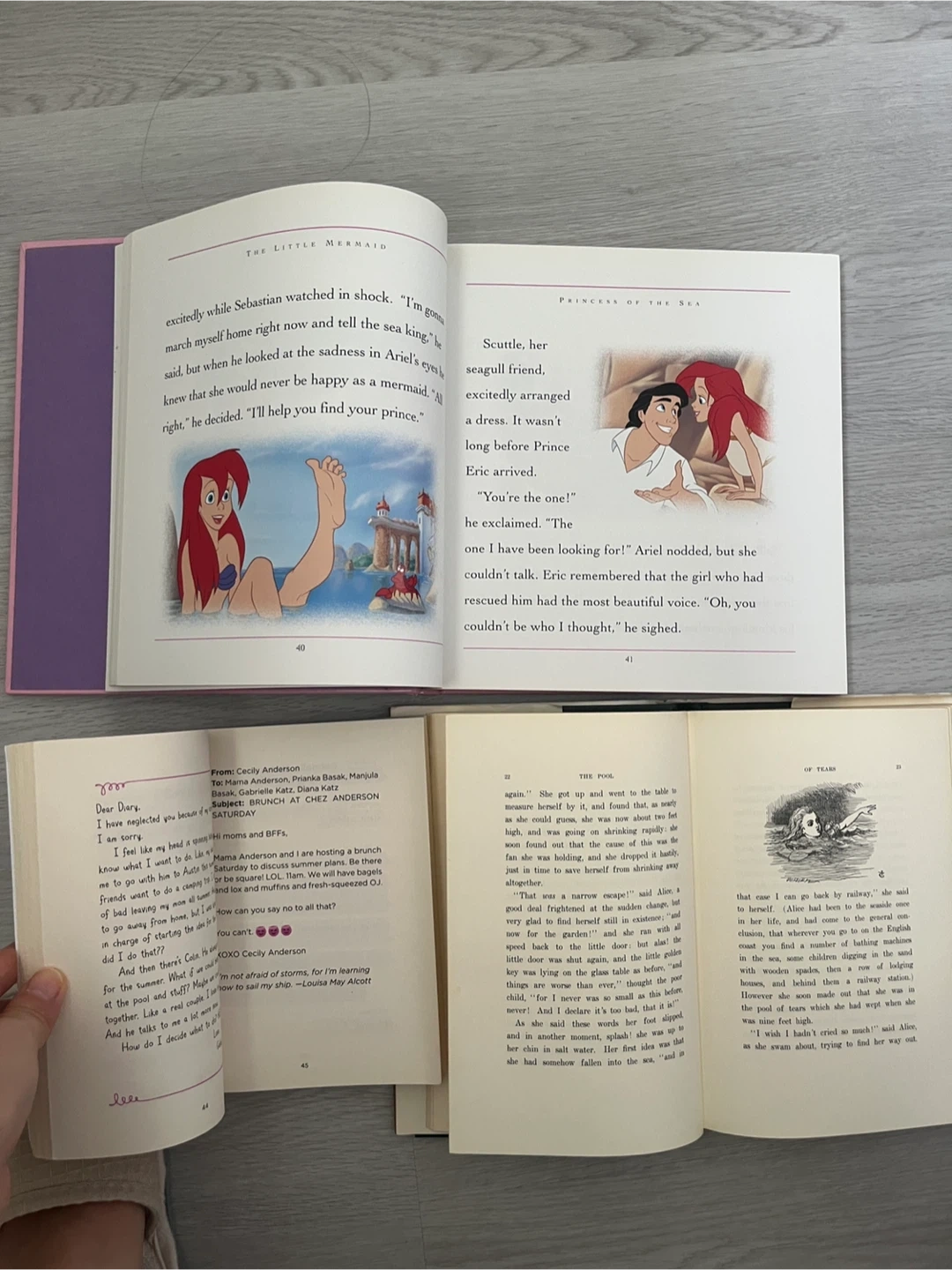 This lot includes Disney's Princess Collection: Love & Friendship Stories and Alice's Adventures in Wonderland by Lewis Carroll. Both are children's books. Perfect for young readers who love classic tales and princesses.