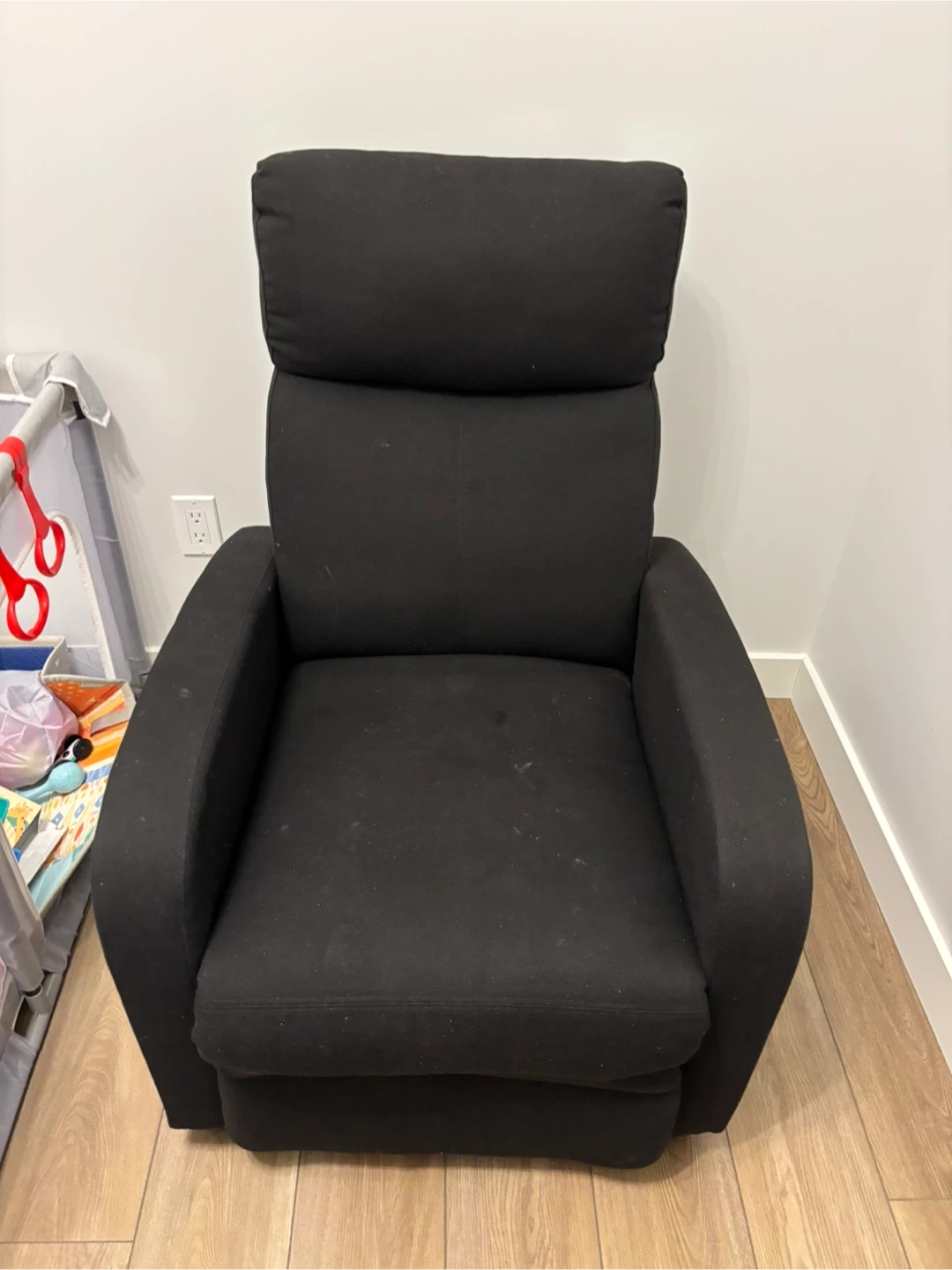 Buy & SellBlack Recliner ChairBlack Recliner Chair$300This is a black recliner chair. It's made of fabric. The chair reclines for comfort.ConditionLike newWHERE TO MEETAsterView MapSELLERSukhpreetAster252 reviews0 chats·0 favorites·22 viewsSEND CHAT TO SELLERHi Sukhpreet! I’m interested in your listing.Hi Sukhpreet! I’m interested in your listing.Get the Karrot app to chatSign In to chat