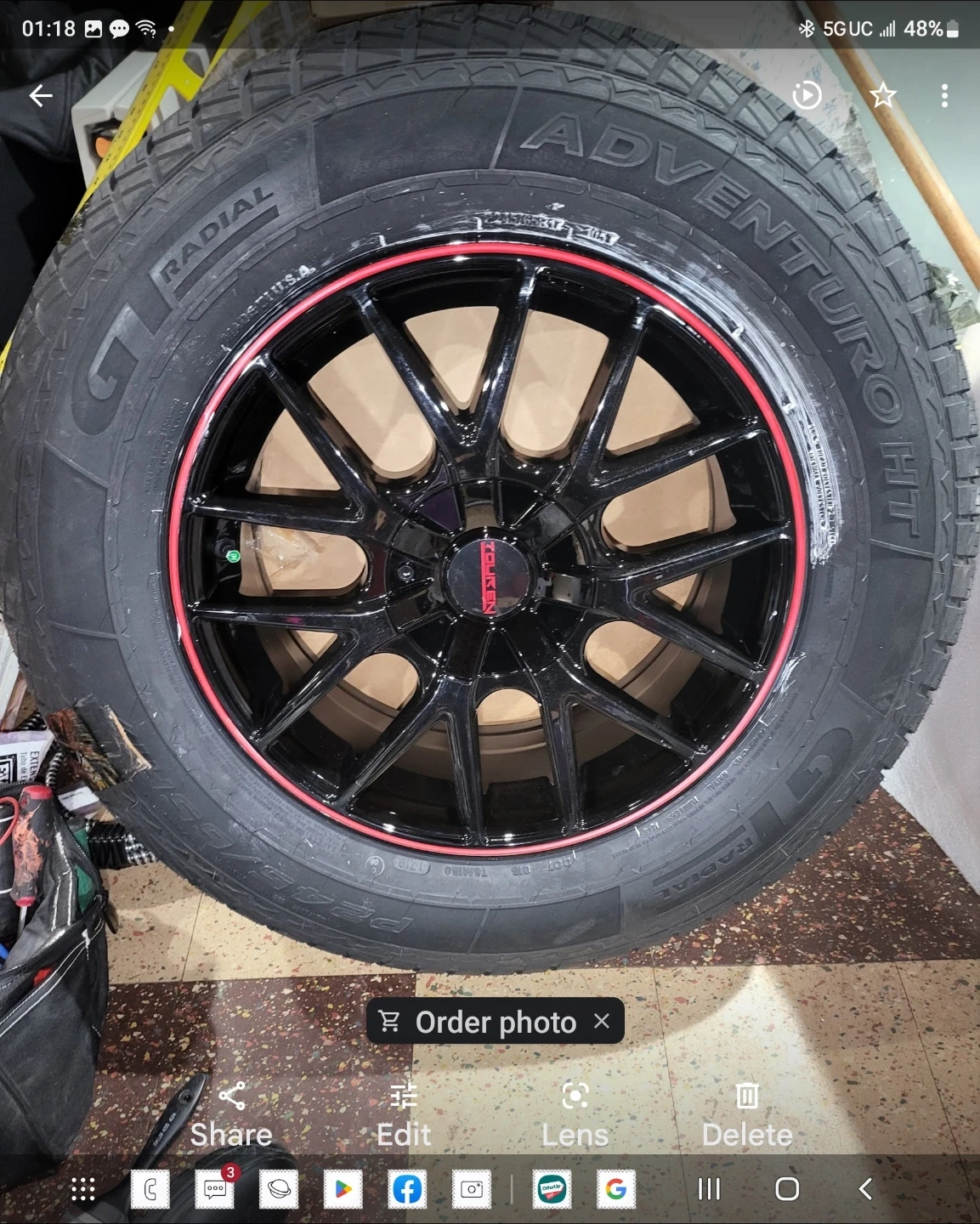 Set of 4 GT Radial Adventuro HT tires. Size P245/65R17. These are all-season tires. Balanced And custom Rim Set.