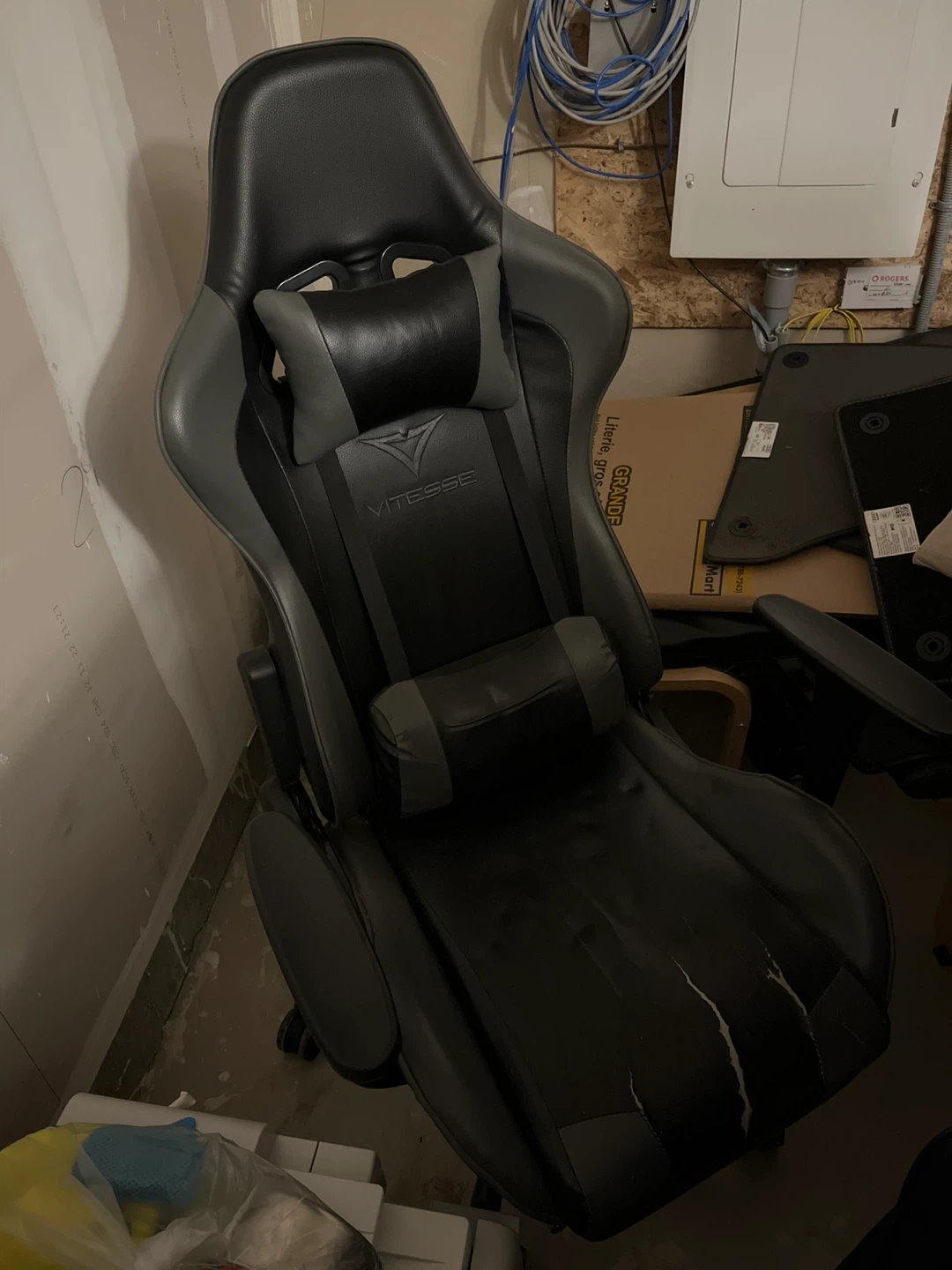 Selling a Vitesse gaming chair. It has a headrest pillow and lumbar support pillow for extra comfort. Used for a few years.