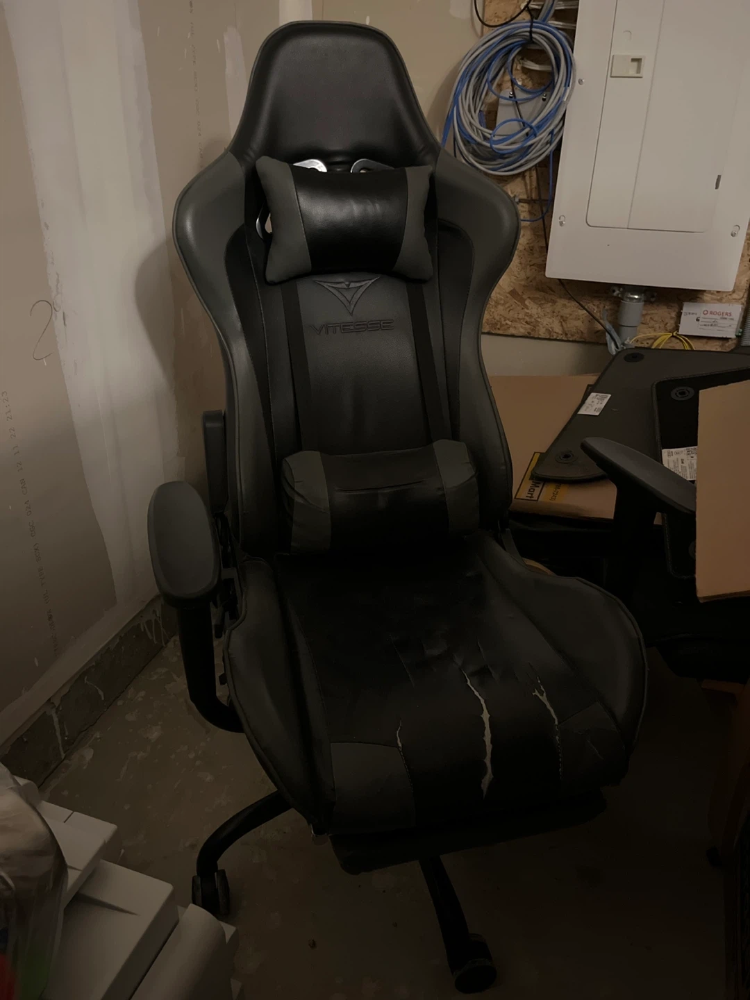 Selling a Vitesse gaming chair. It has a headrest pillow and lumbar support pillow for extra comfort. Used for a few years.