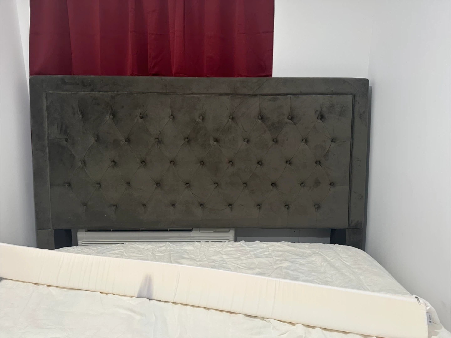 This is a plush velvet tufted headboard. It features a classic button-tufted design for a sophisticated look. The neutral dark gray color complements most bedroom decor.