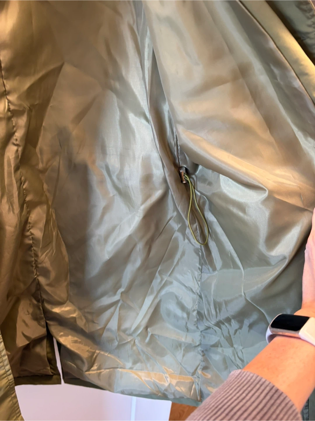 Selling a gently used Windbreaker jacket in a nice olive green colour. It's a size medium and is lightweight and water-resistant, perfect for those unpredictable weather days! Great jacket, worn only a handful of times. Colour wasn’t quite right for me.