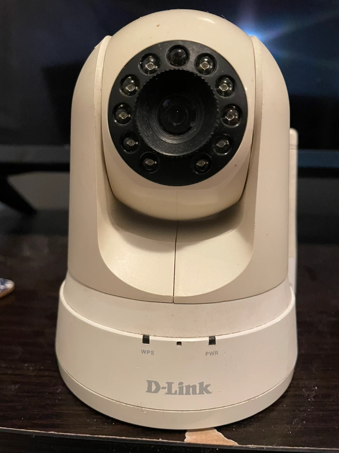 This is a D-Link DCS-5025L wireless IP camera. It features pan and tilt functionality. Includes Ethernet and Wi-Fi connectivity.
