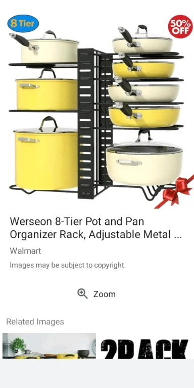 This is a Werseon 8-Tier pot and pan organizer rack! It is adjustable and made of metal. It's easy to assemble and includes the following: